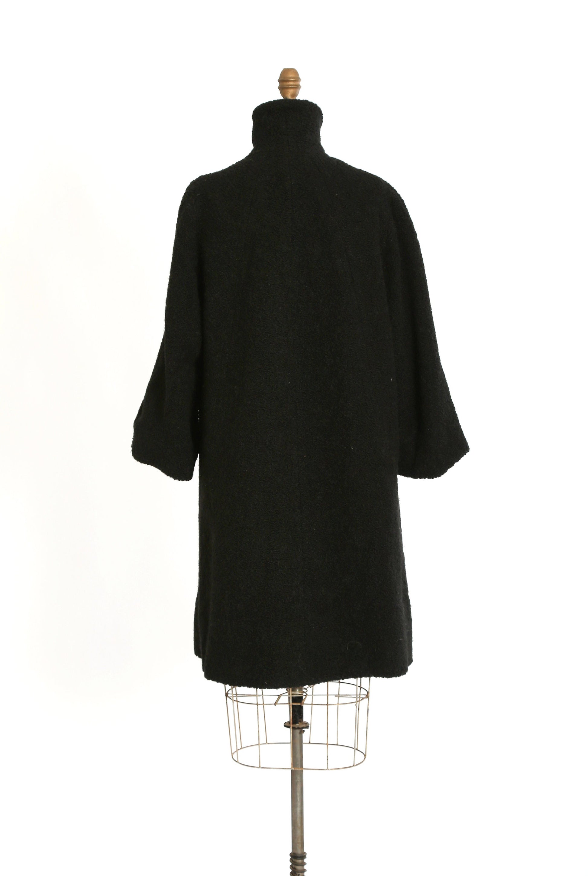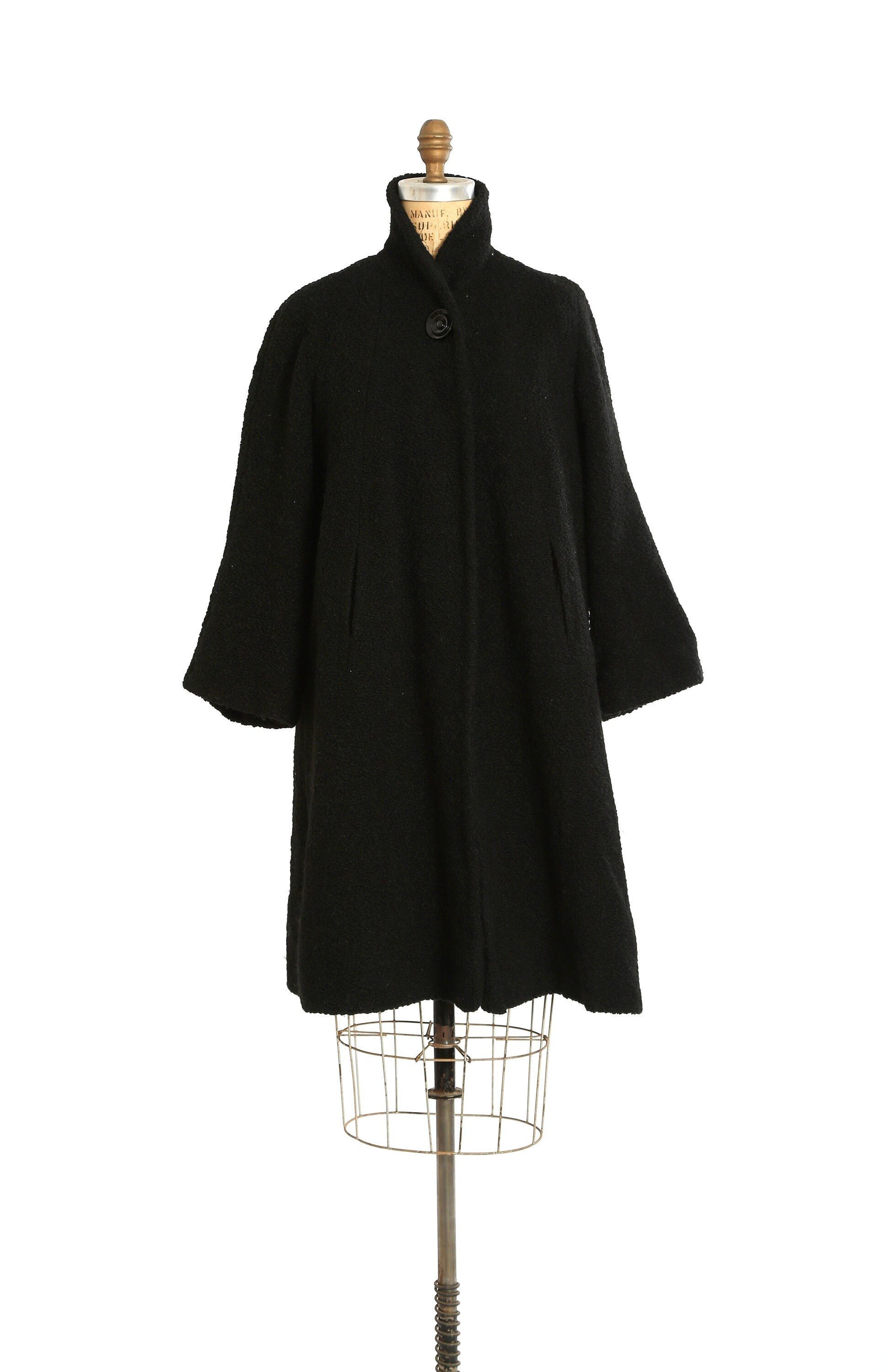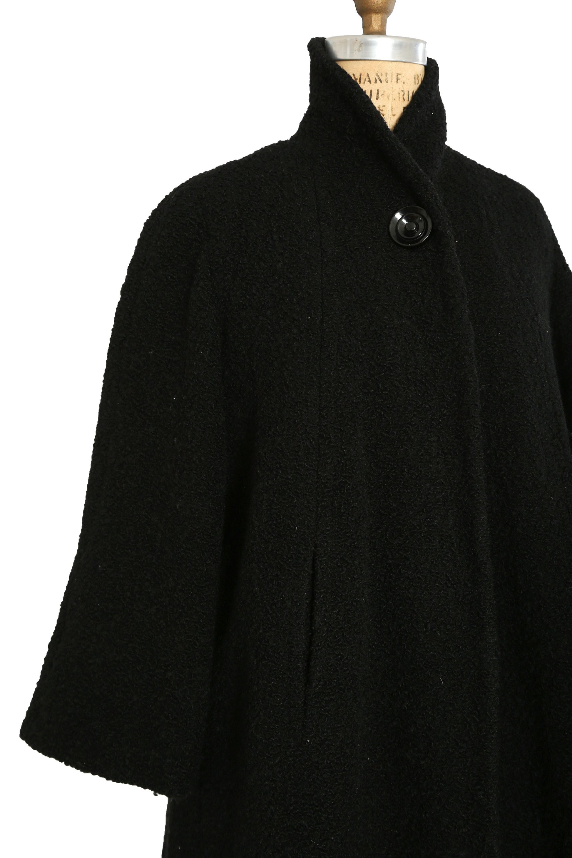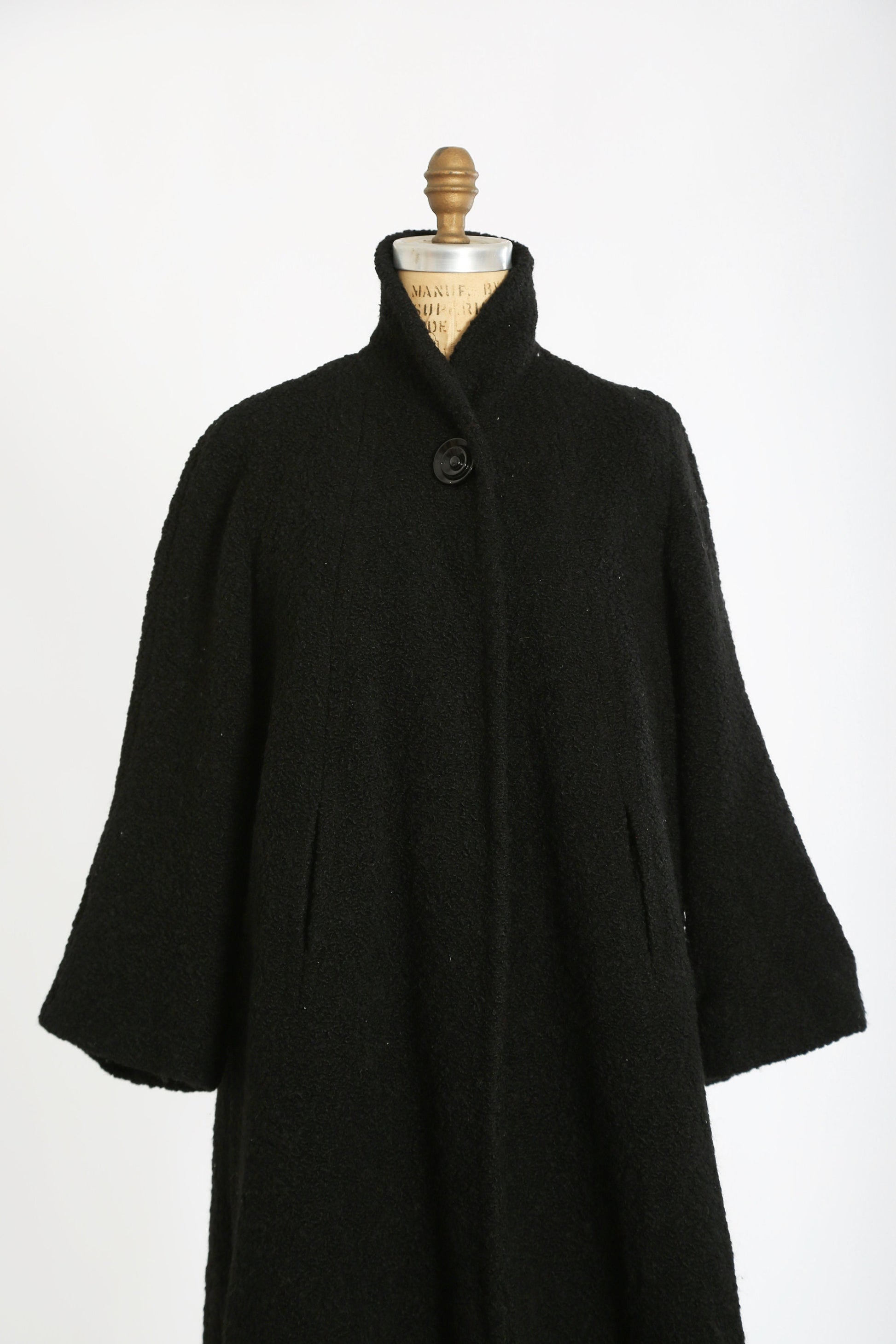Medium weight wool, fully lined in a maroon satin + side pockets & 3/4 sleeve