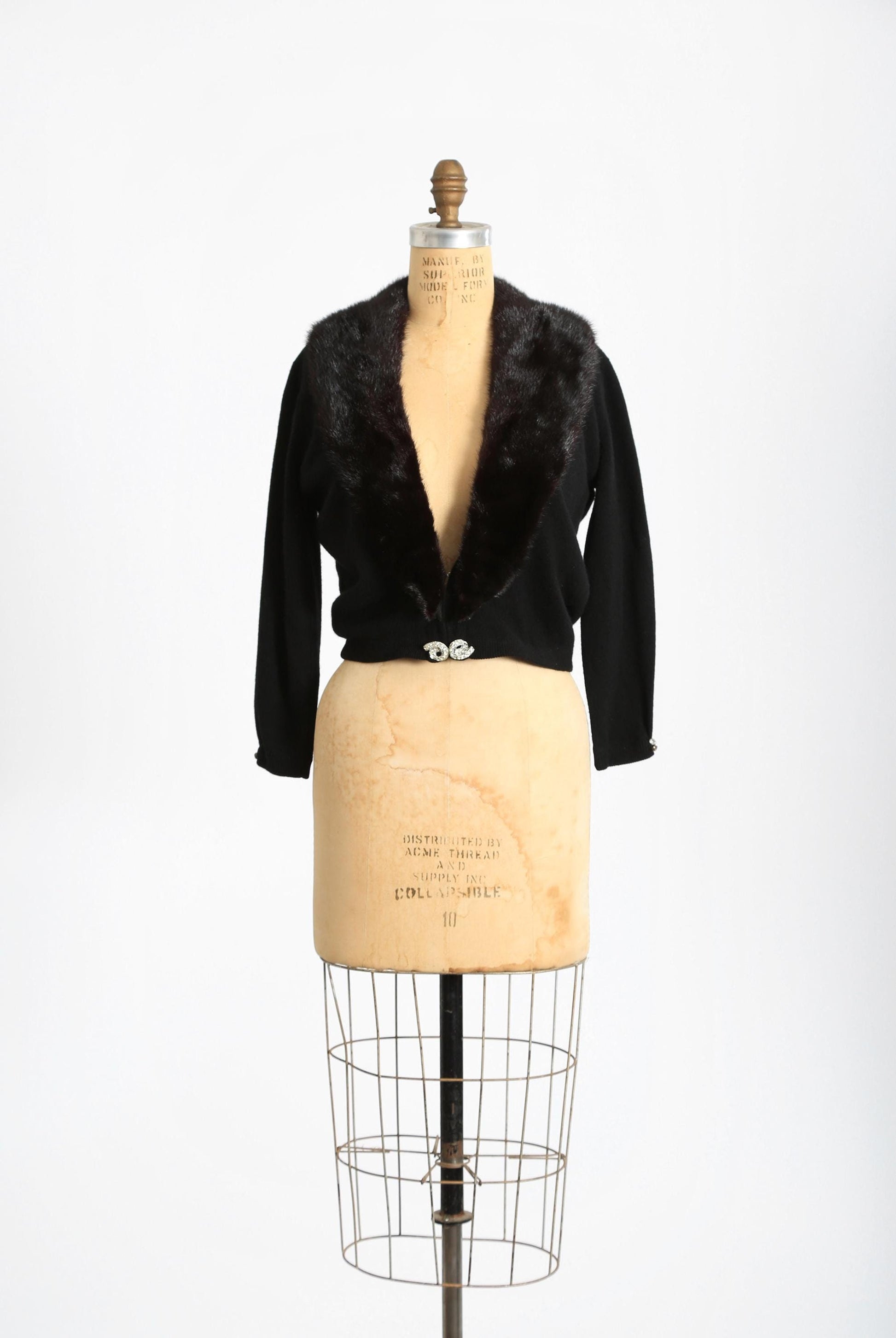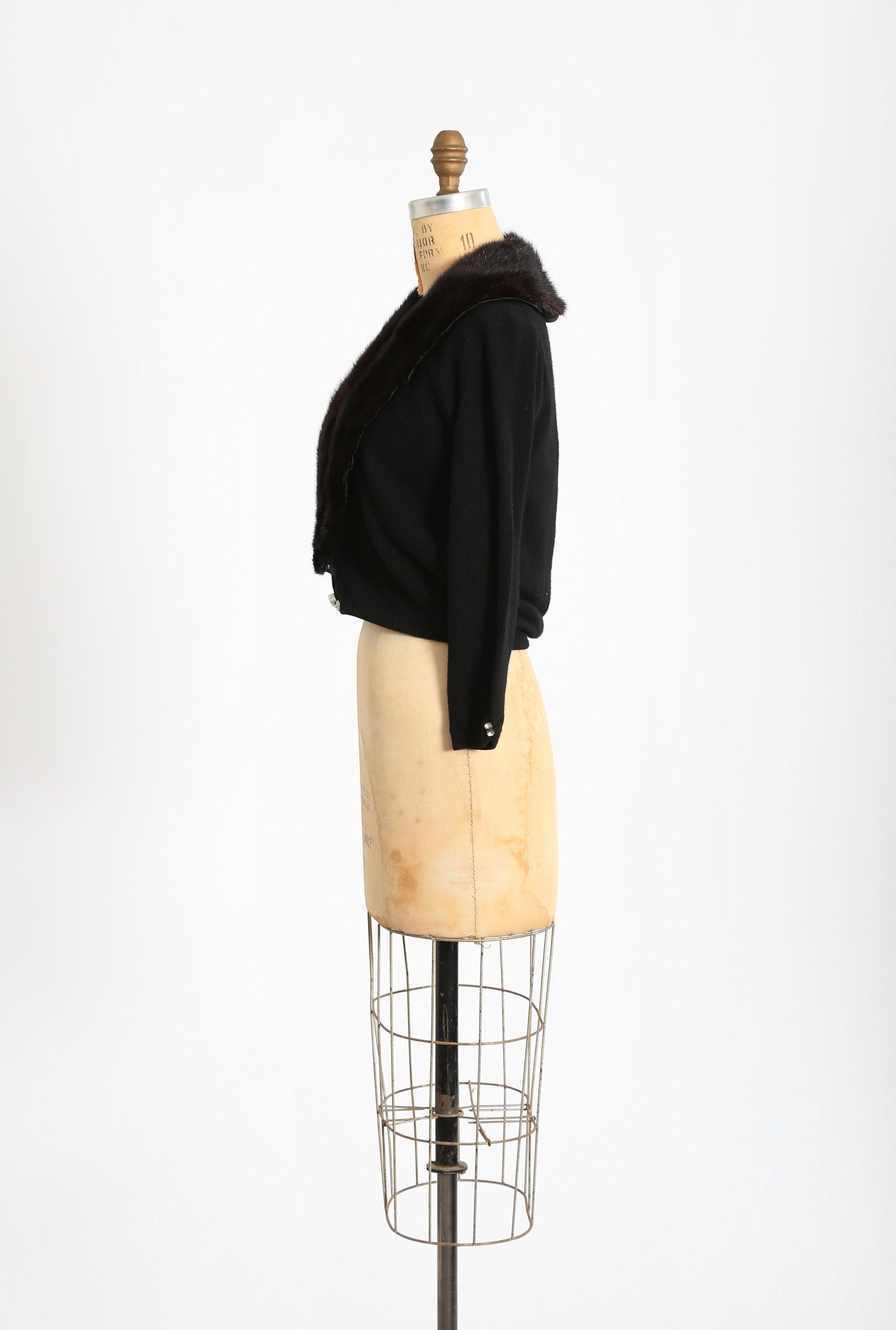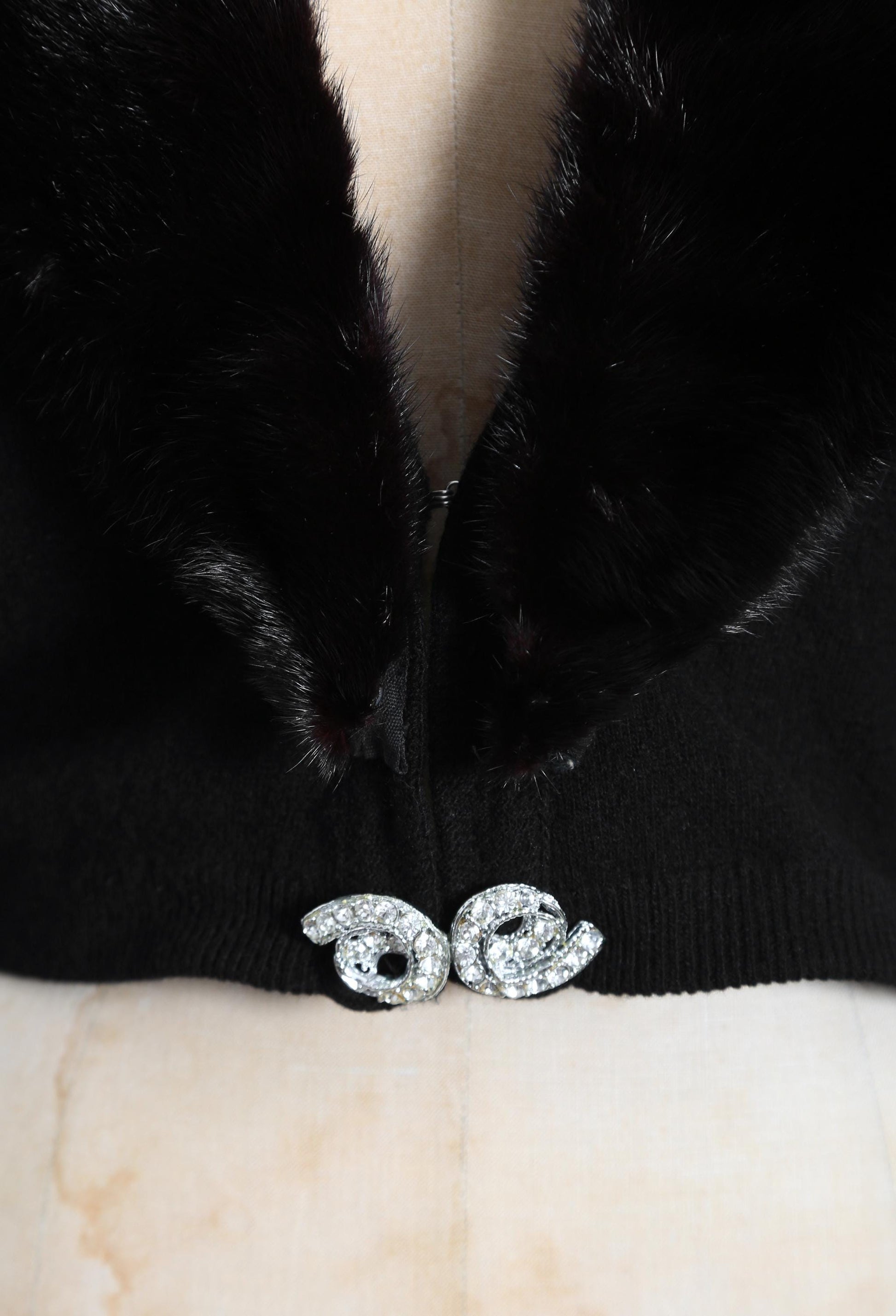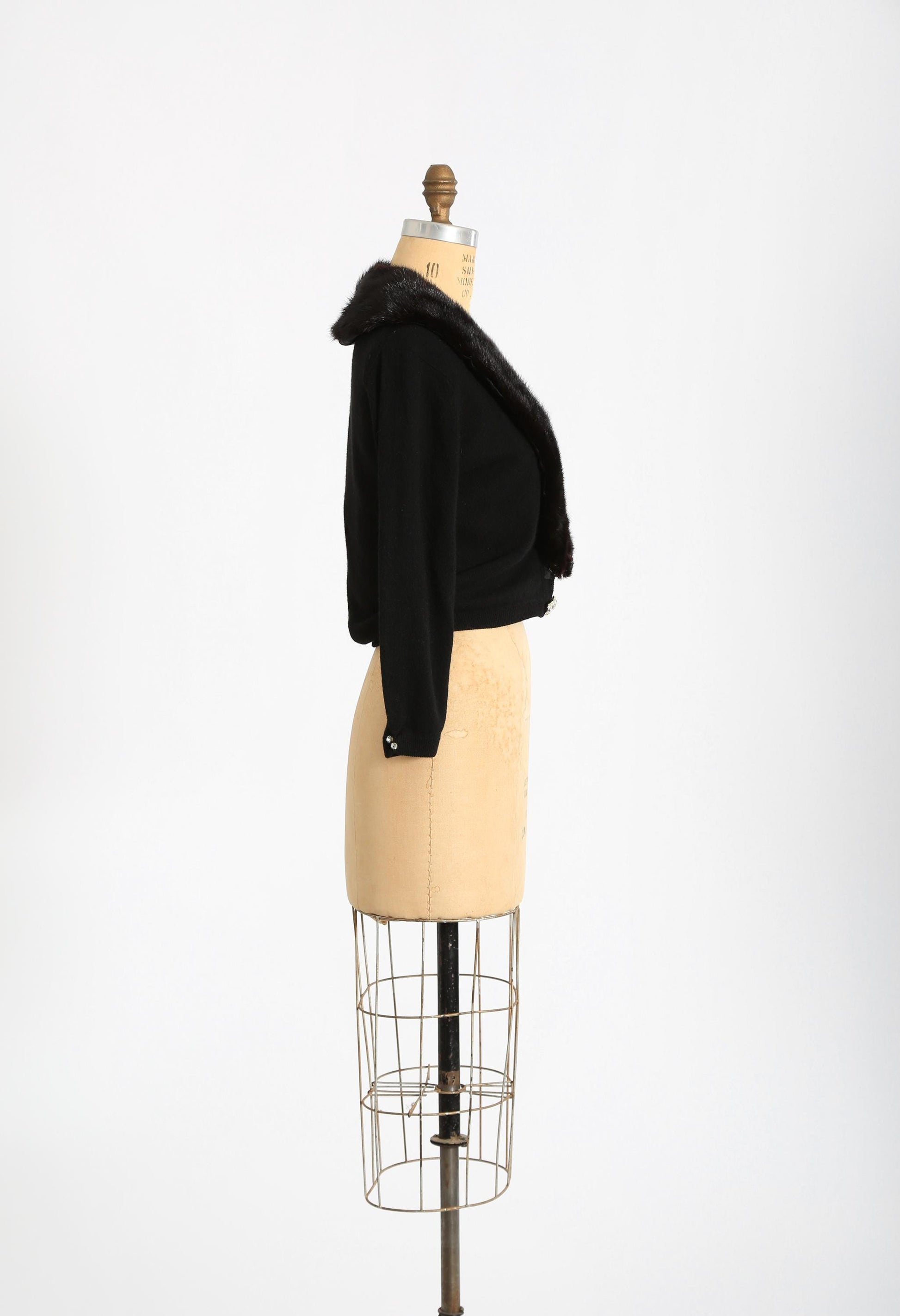 Vintage 50s black Cashmere Mink fur Collar knit cardigan sweater
