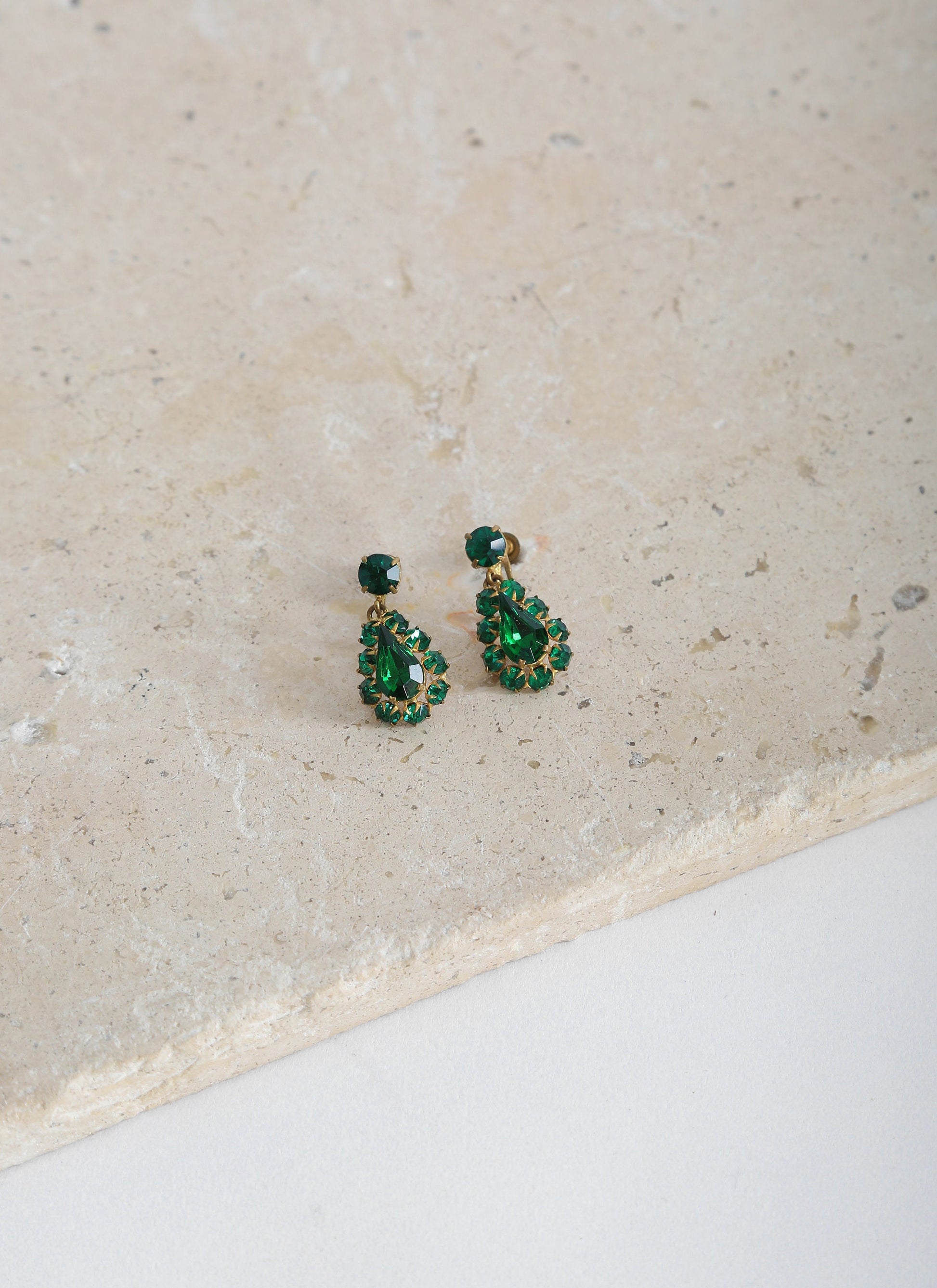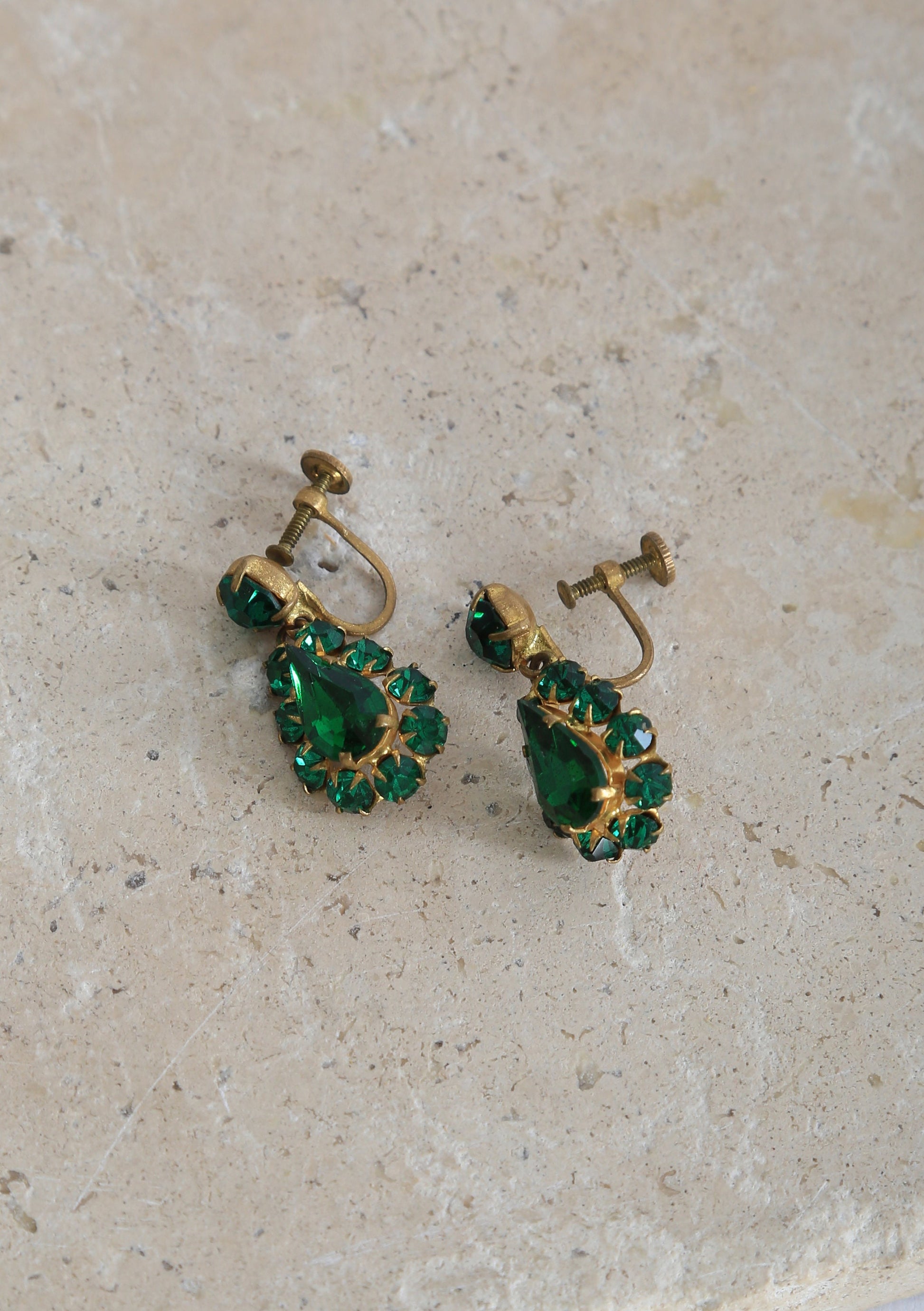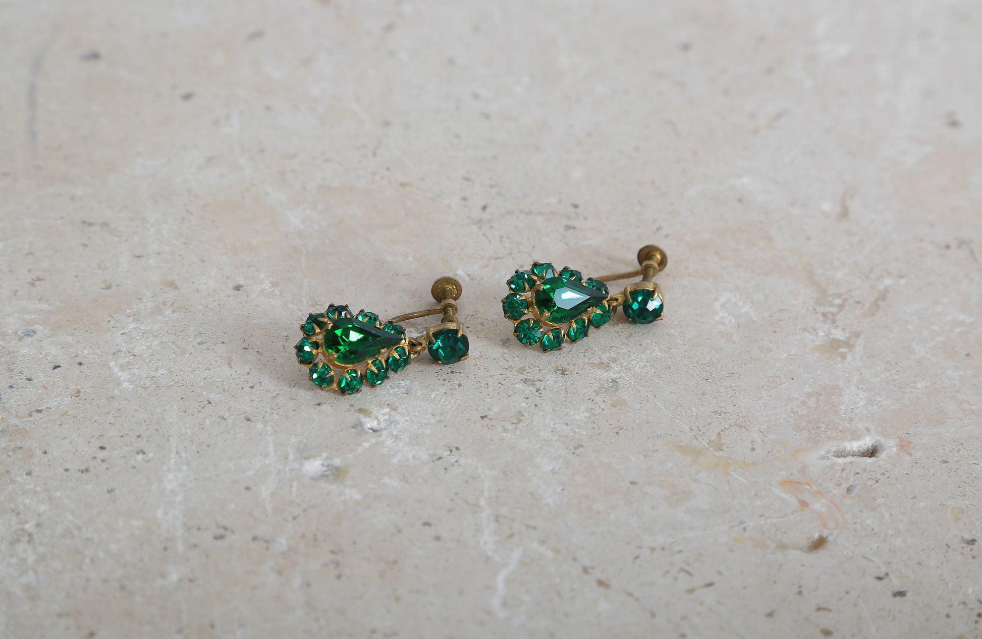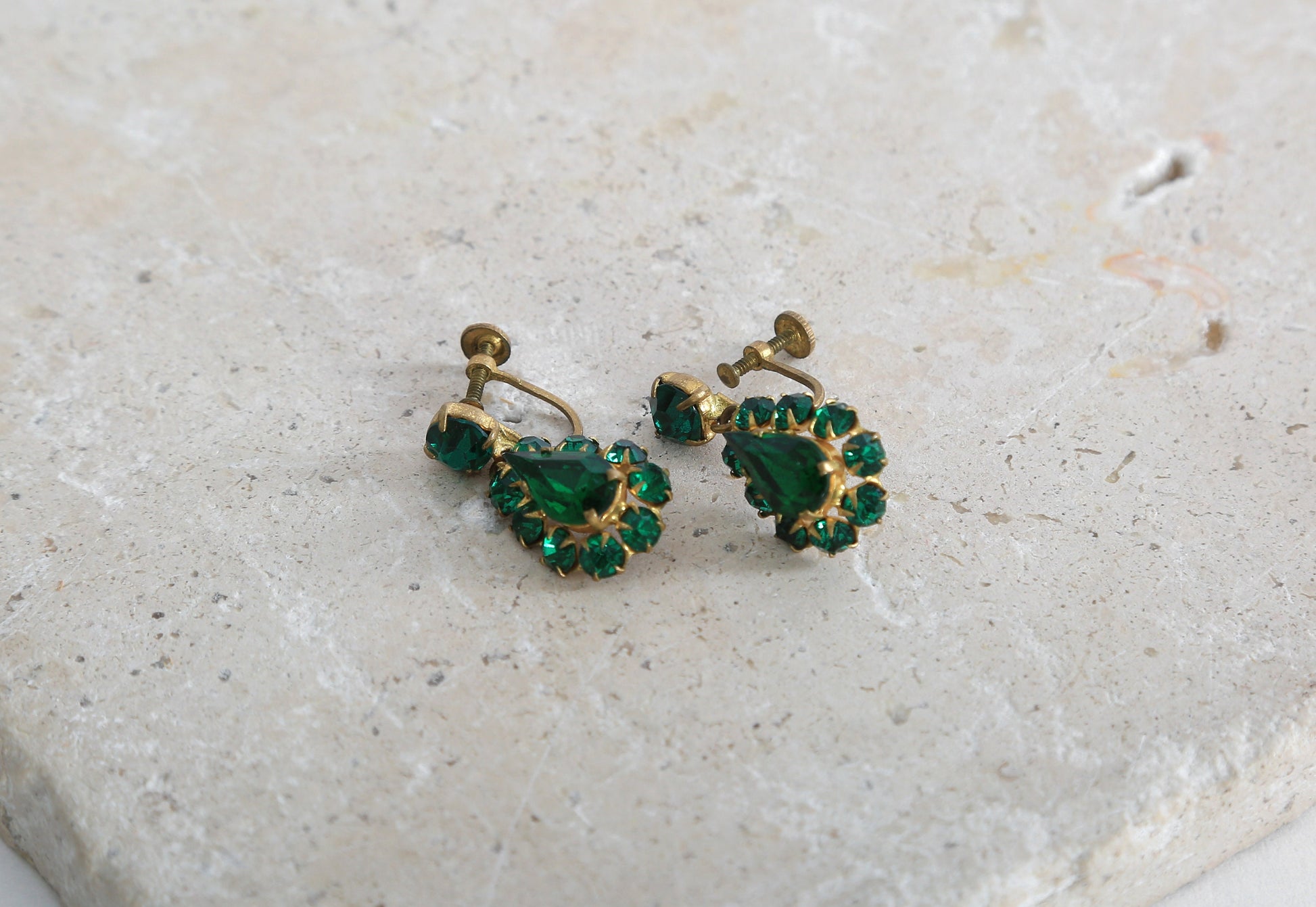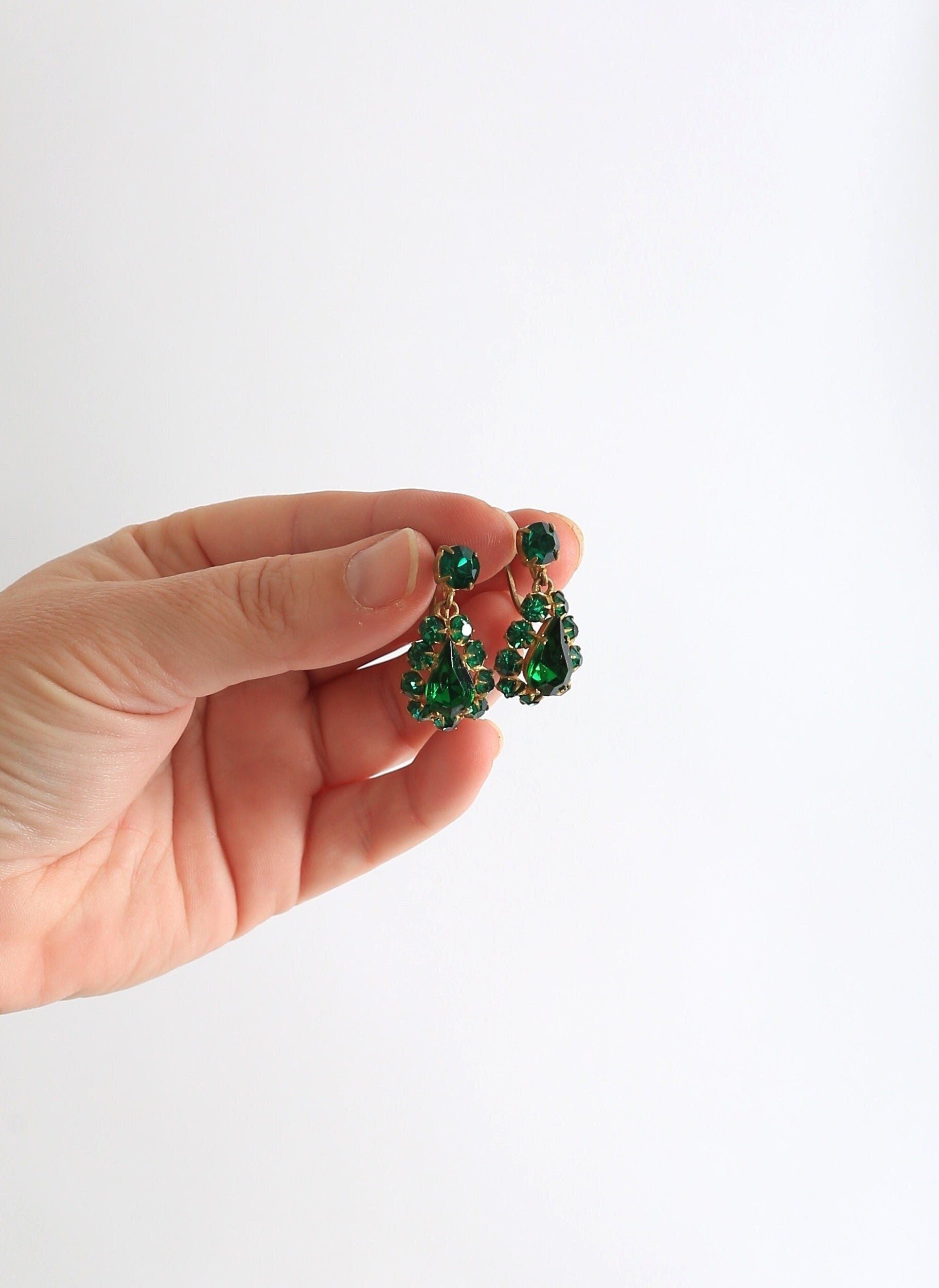 Stunning vintage 1950s Czech emerald green glass drop earrings