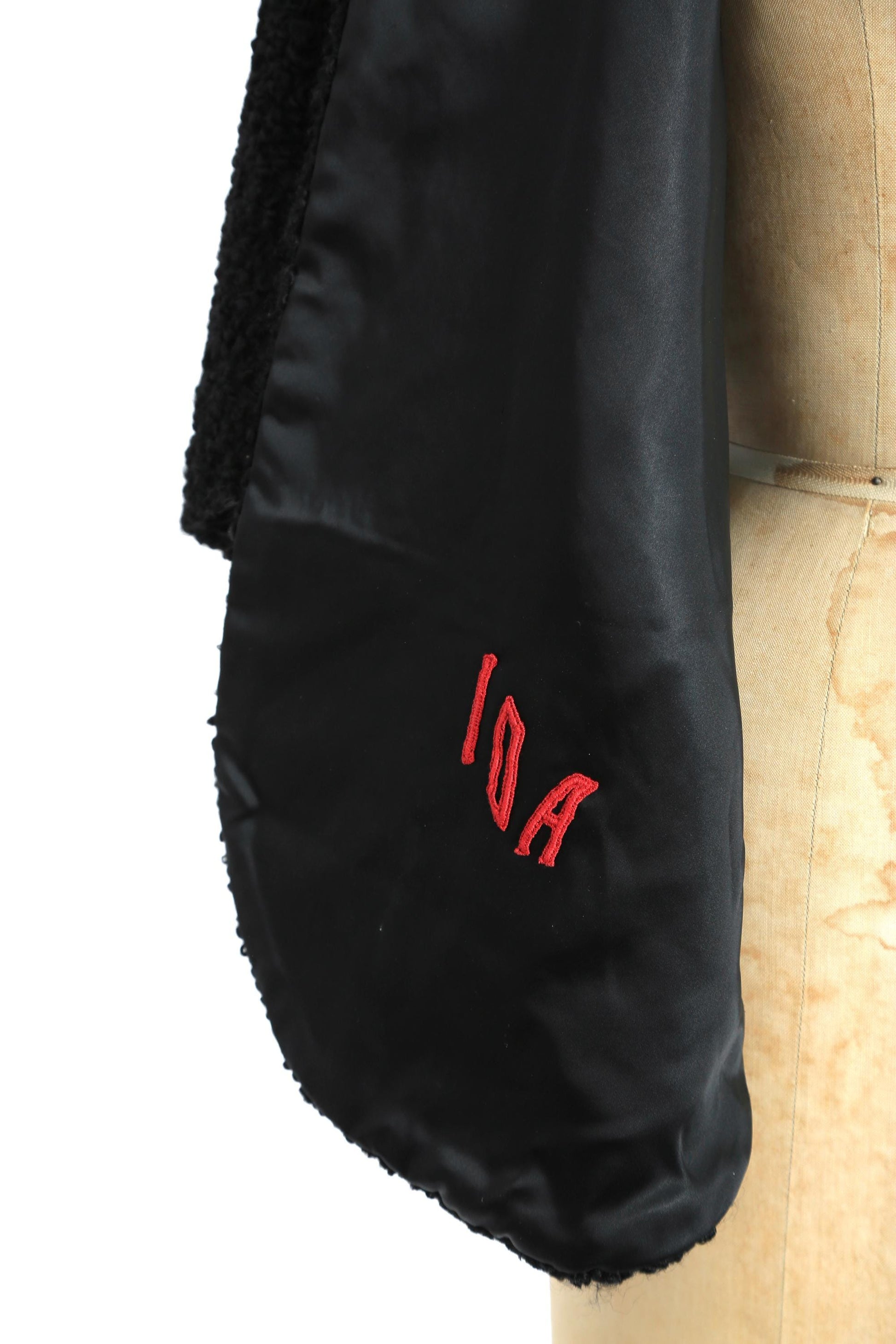Soft faux fur, lined in a black satin with red embroidered IOA name embroidered on inside