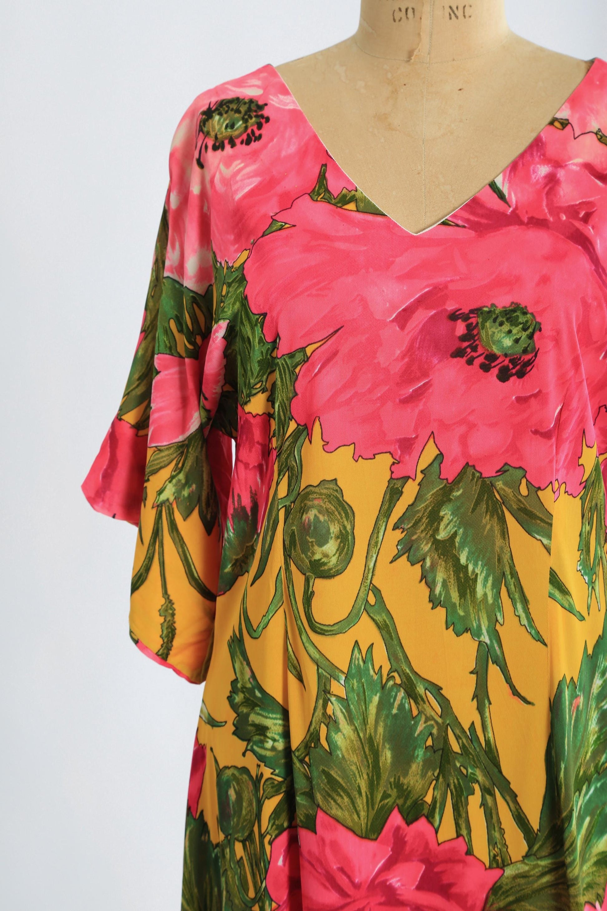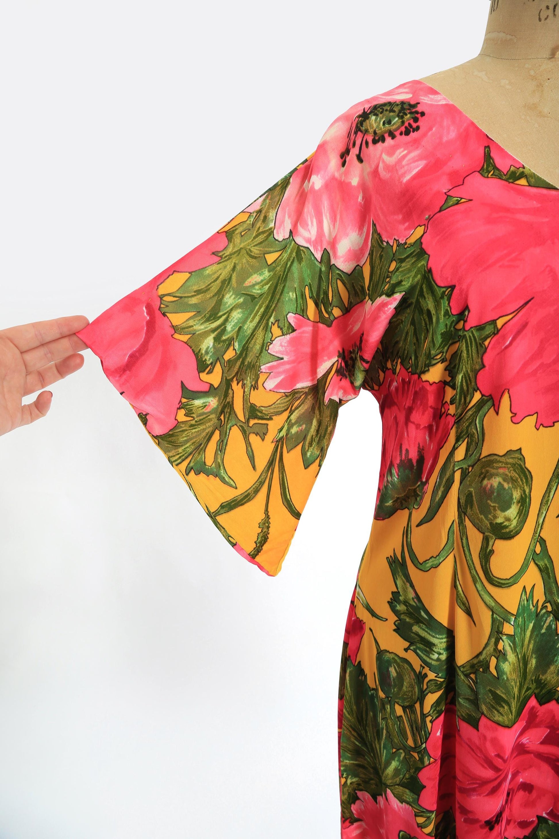 Vintage 60s neon floral Psychedelic nylon maxi dress
