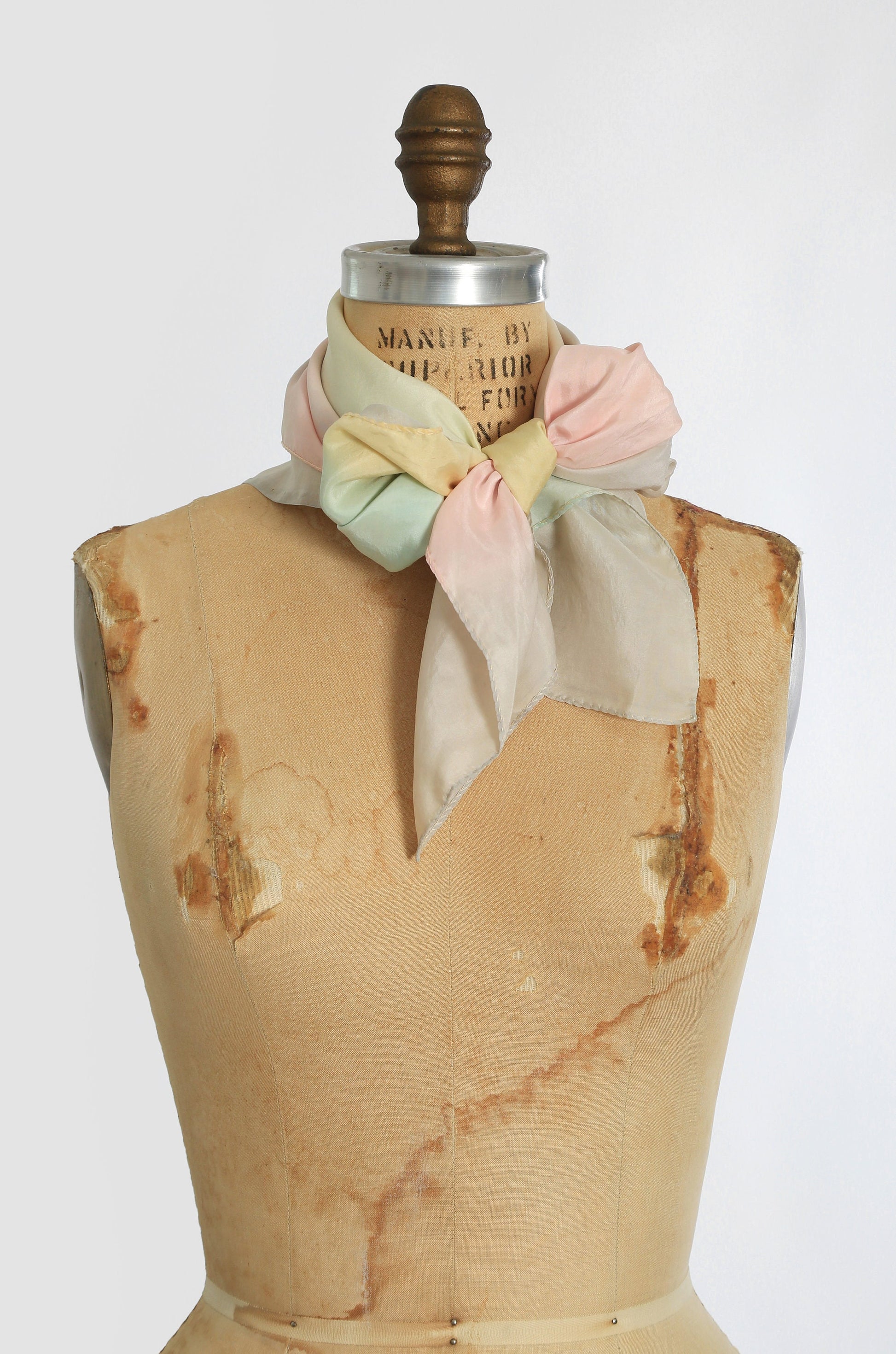Vintage 60s rainbow ombre hand rolled silk scarf