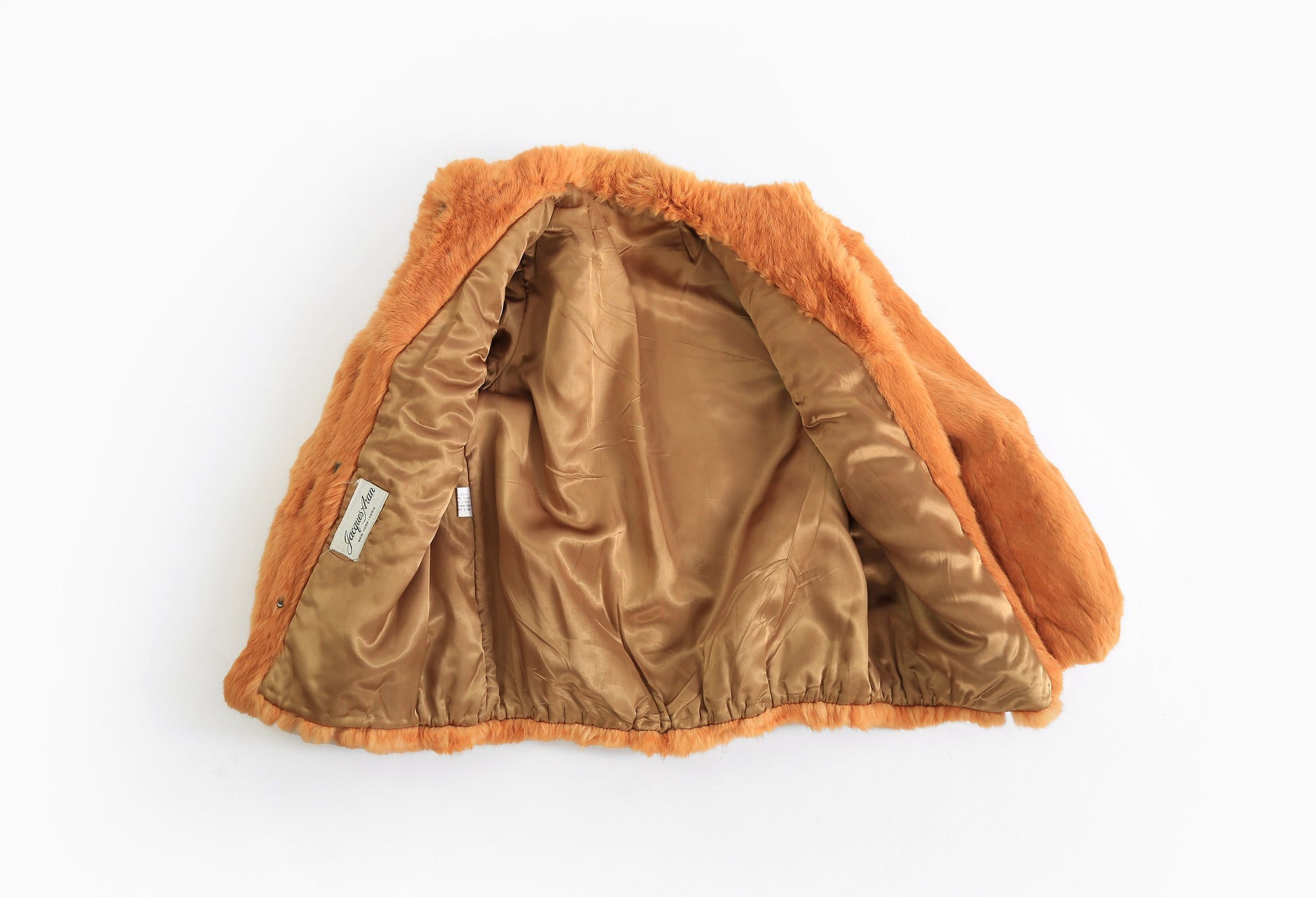 Vintage 70s orange Rabbit Fur Coat Plush chubby Stroller Jacket