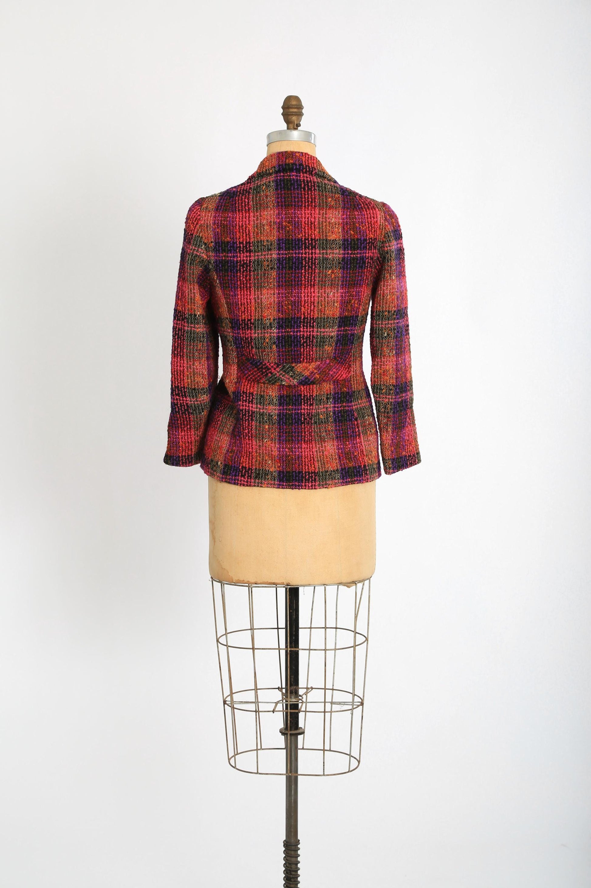 Vintage 70s Pink plaid Scottish wool blazer jacket