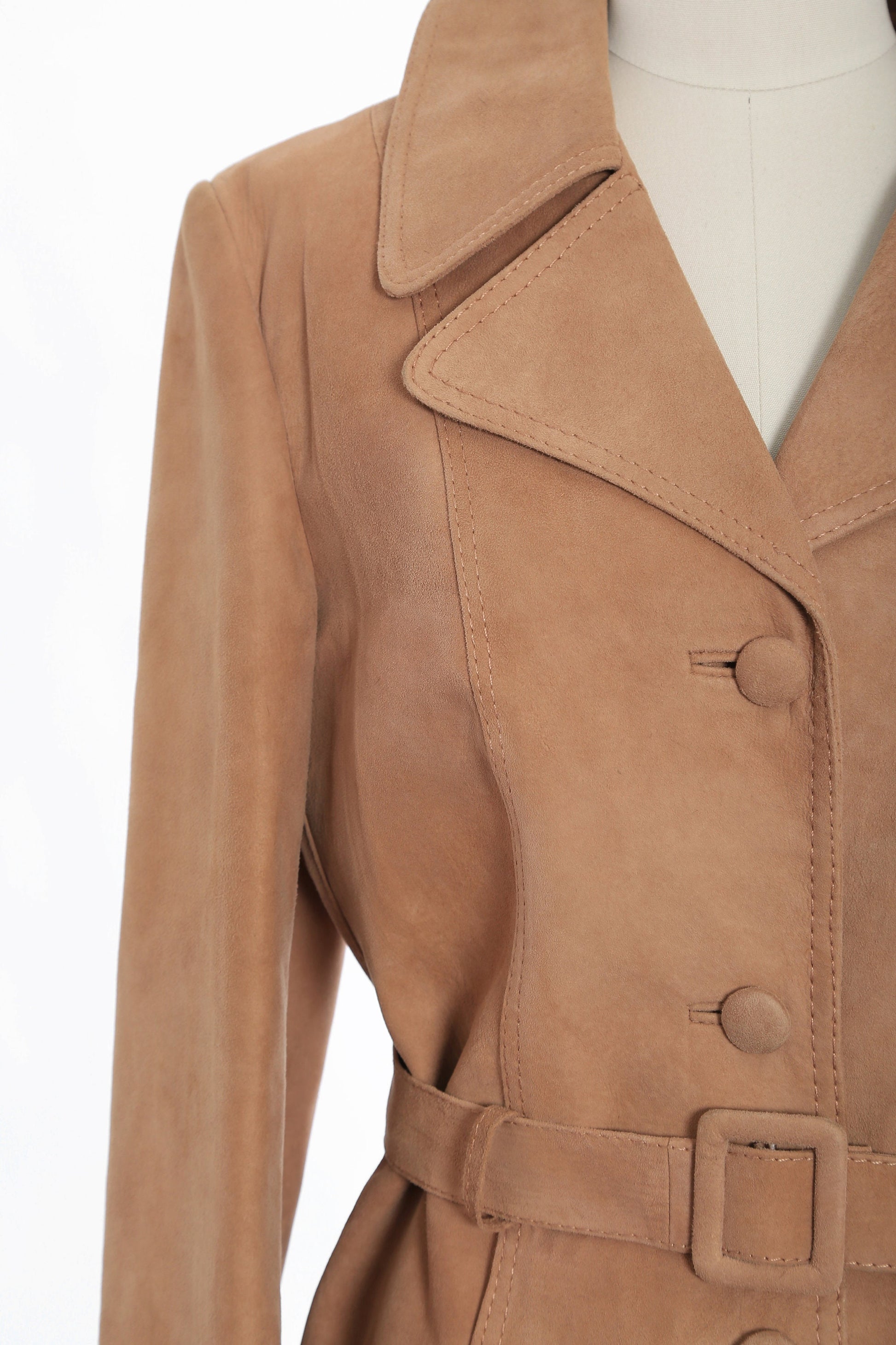 Stunning Vintage 1970s deadstock suede leather trench coat