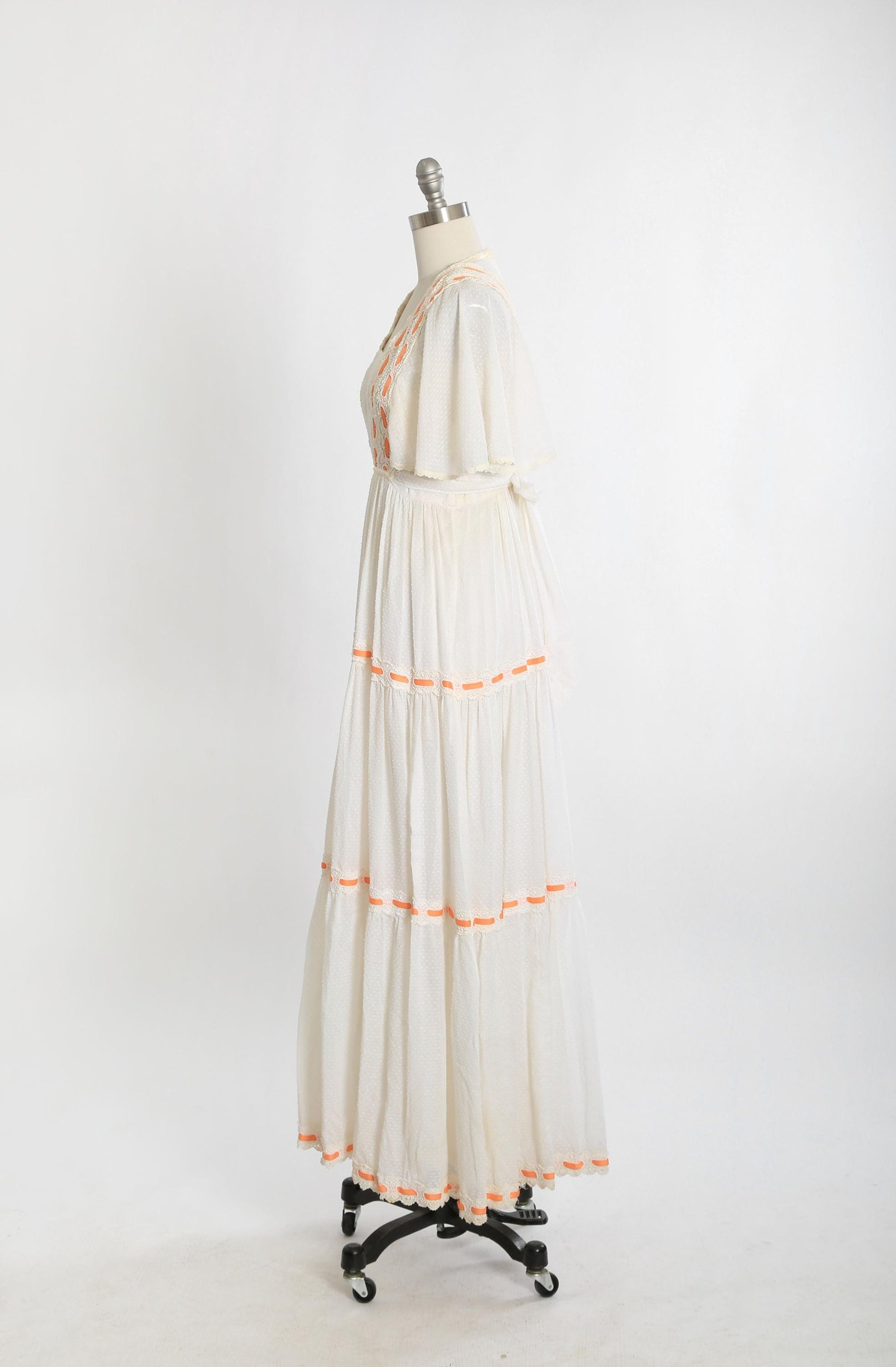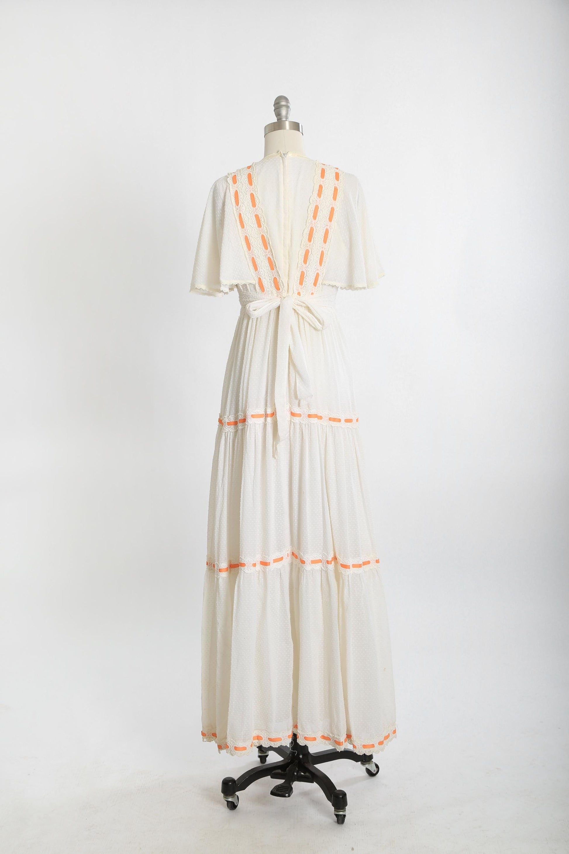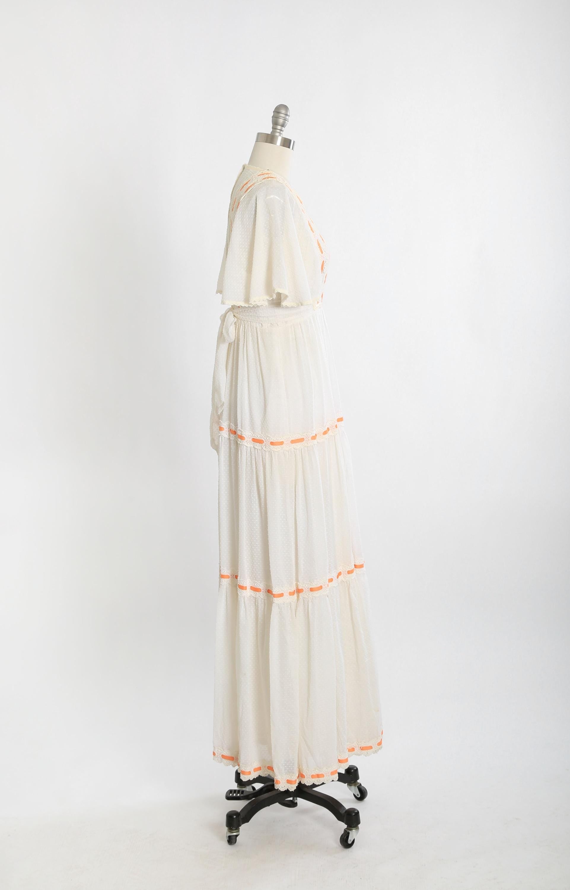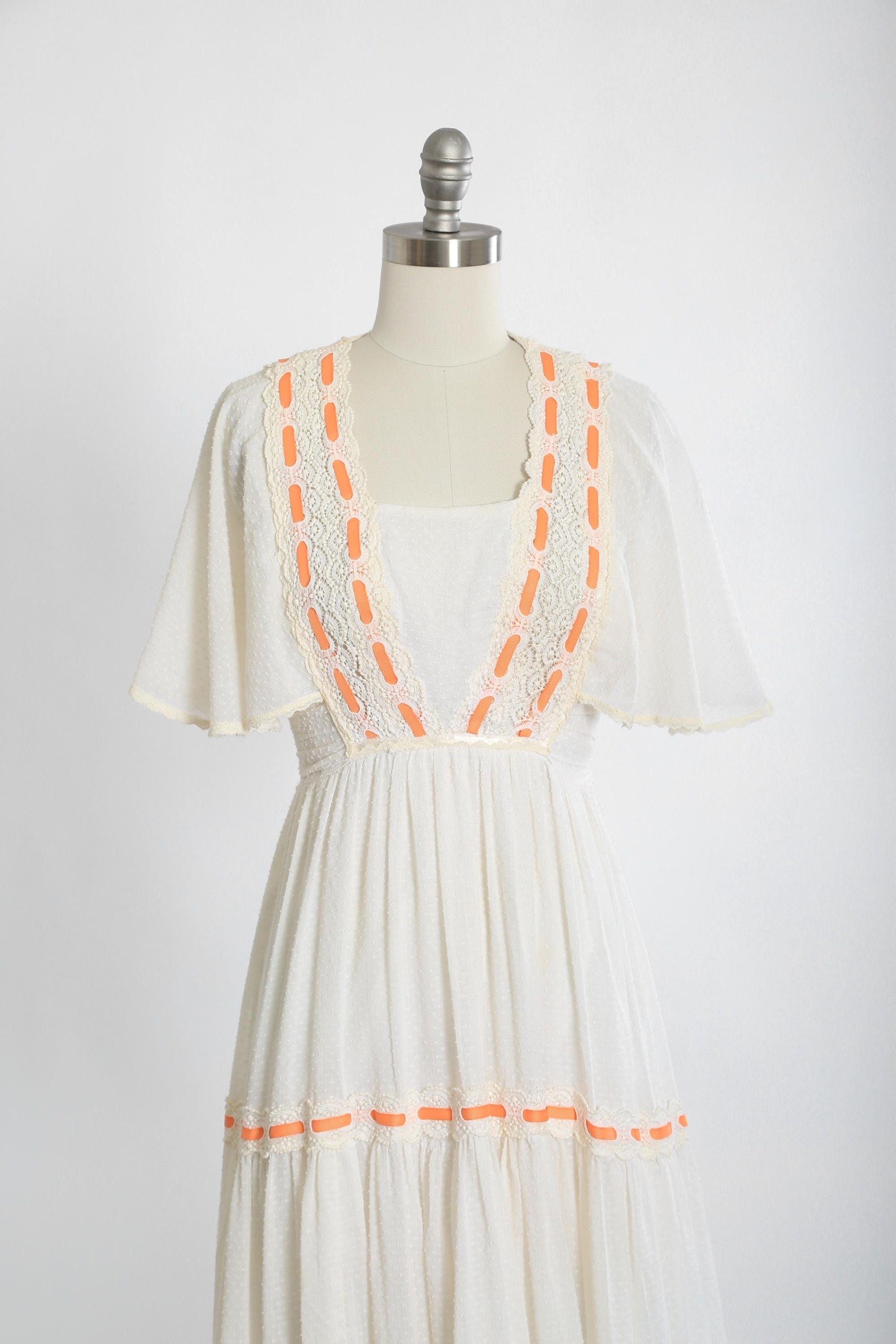 White cotton Swiss dot with bright orange ribbon & crochet trim