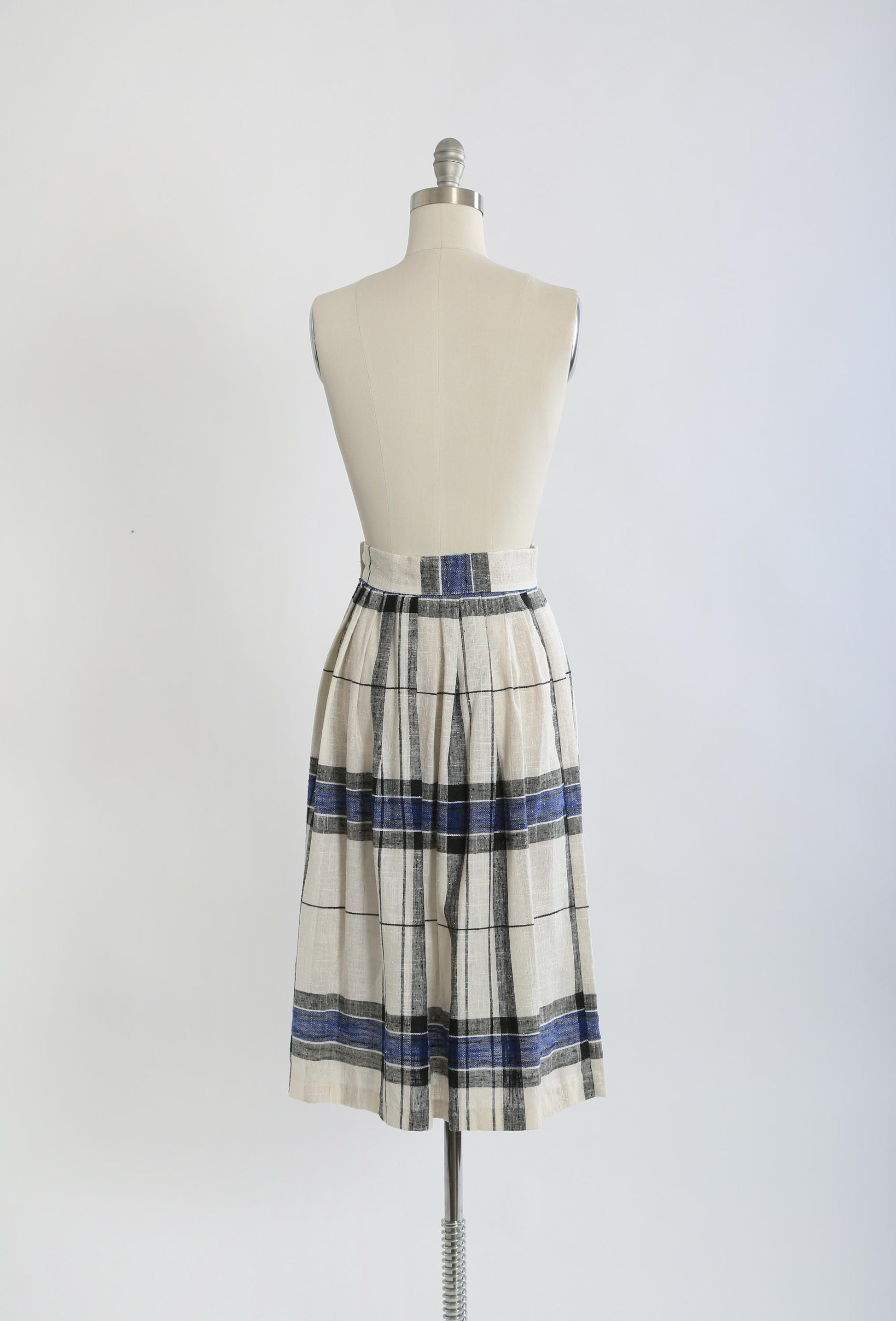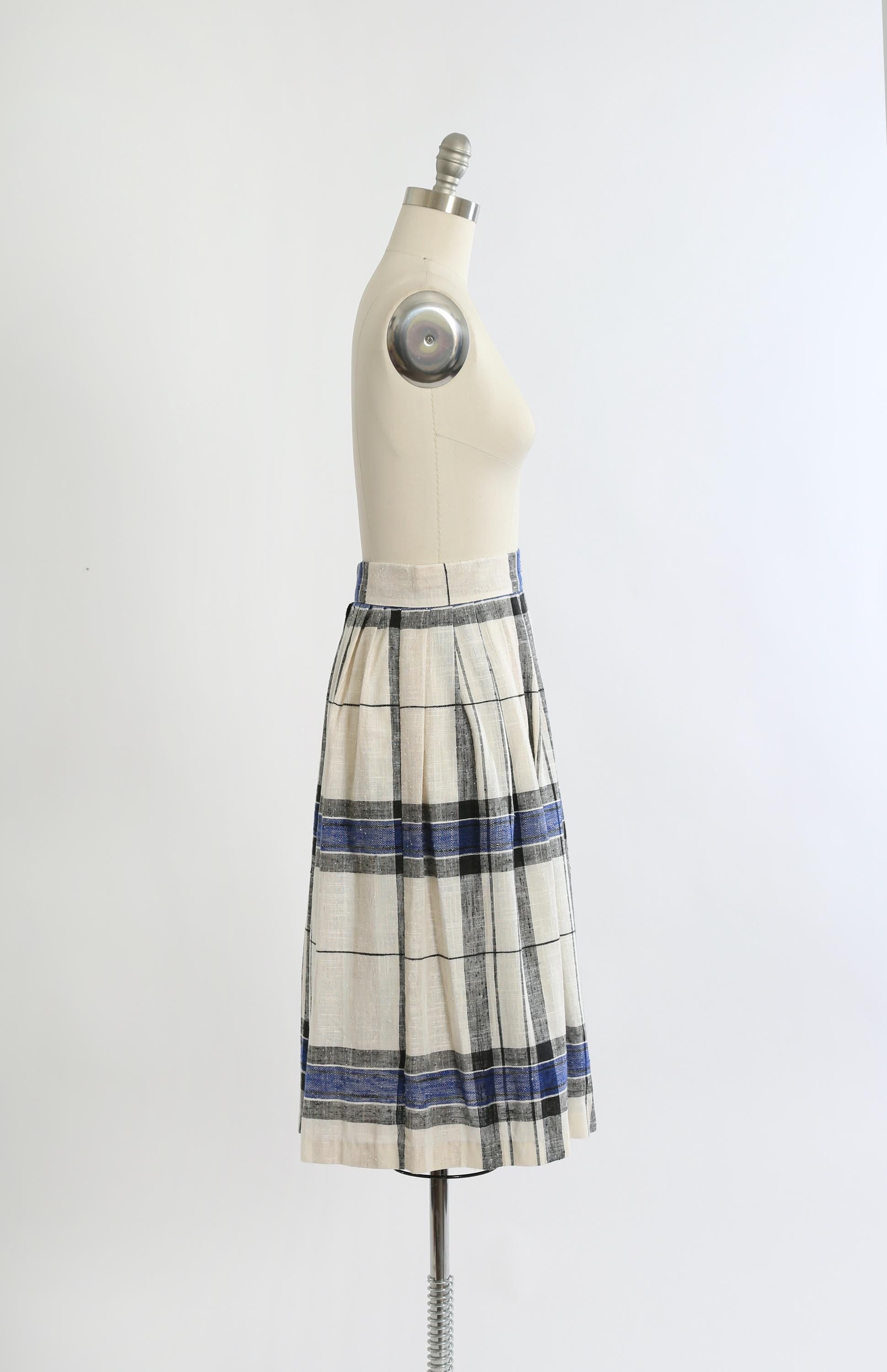 Vintage 1980s early 90s white, blue + black woven plaid skirt