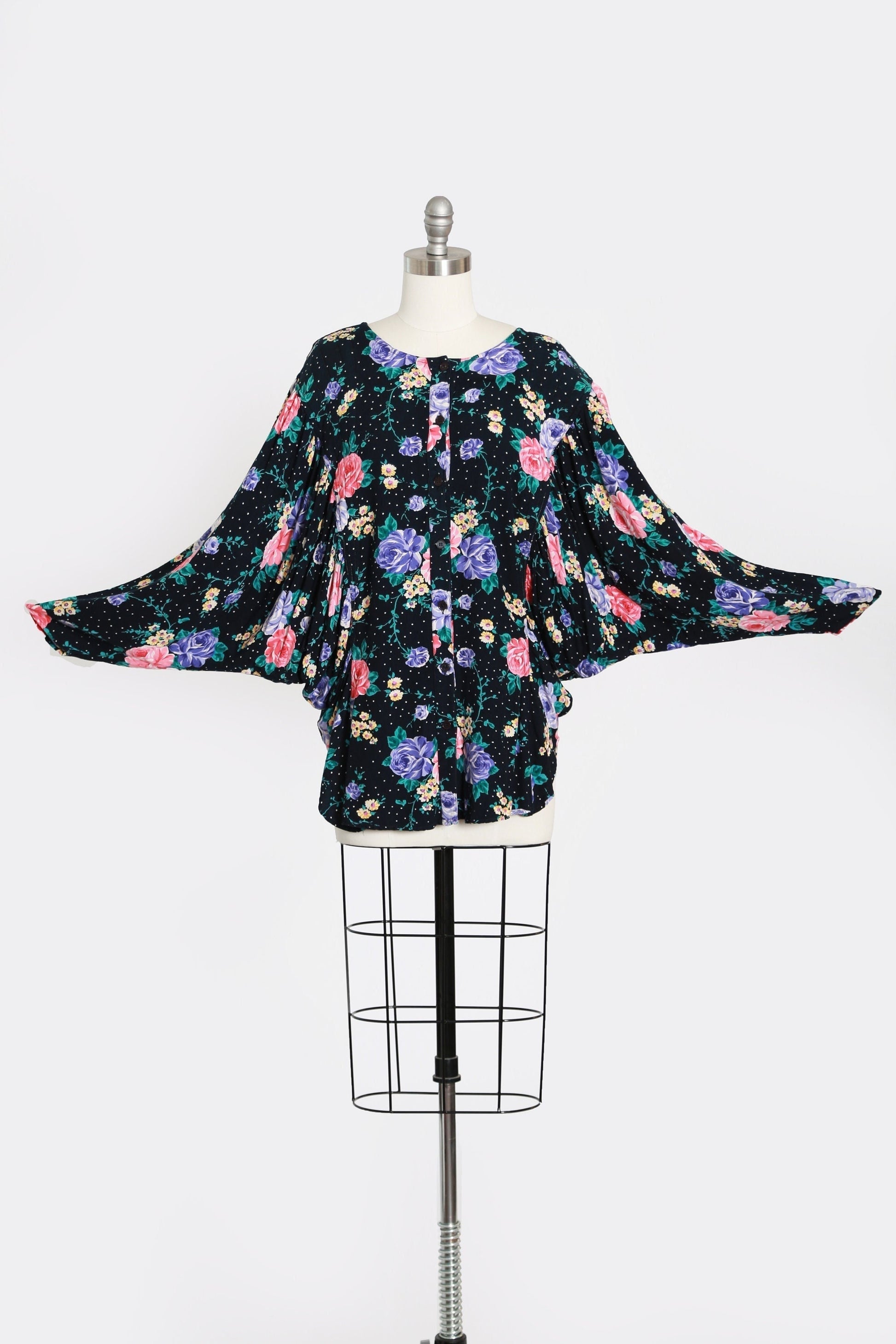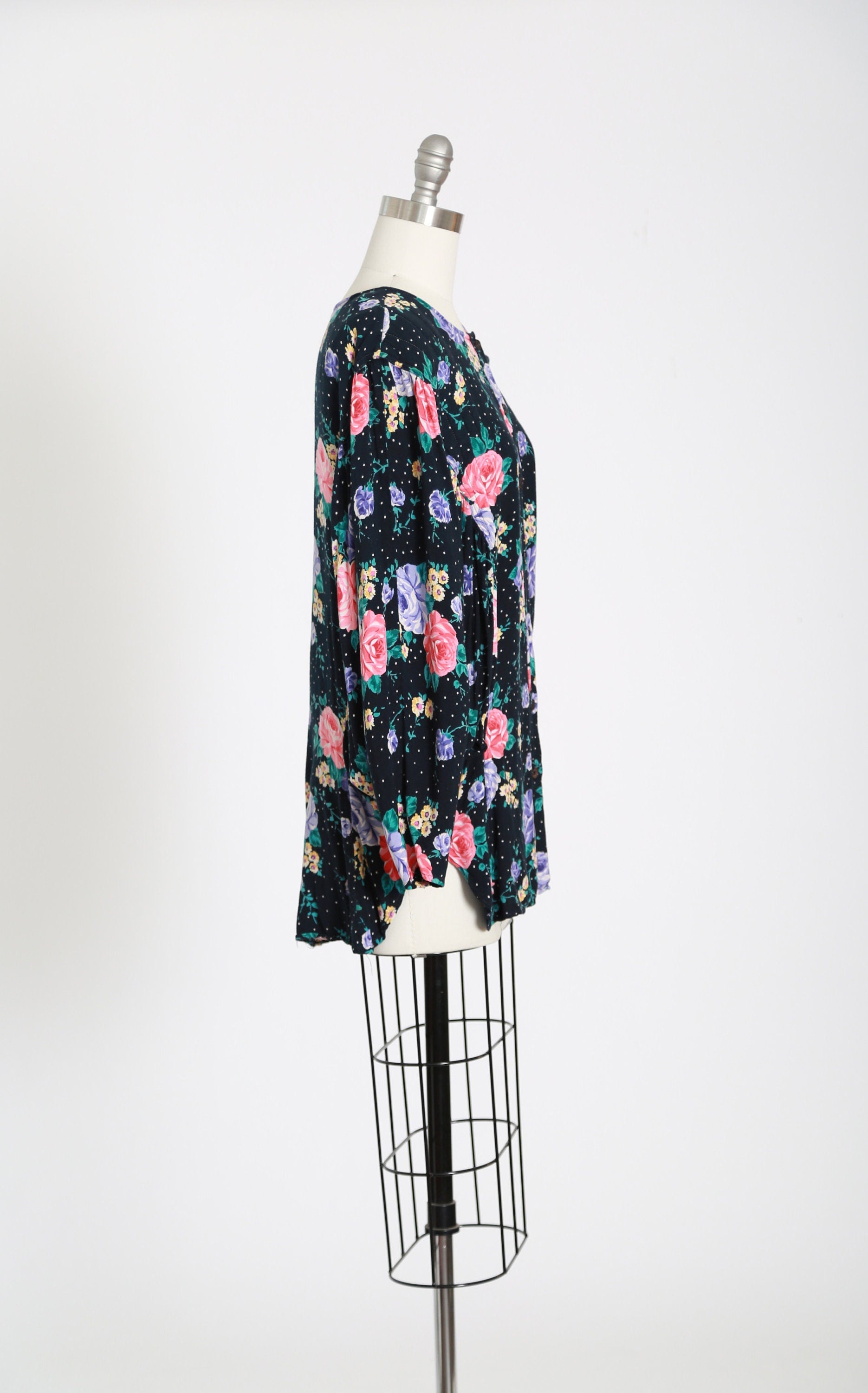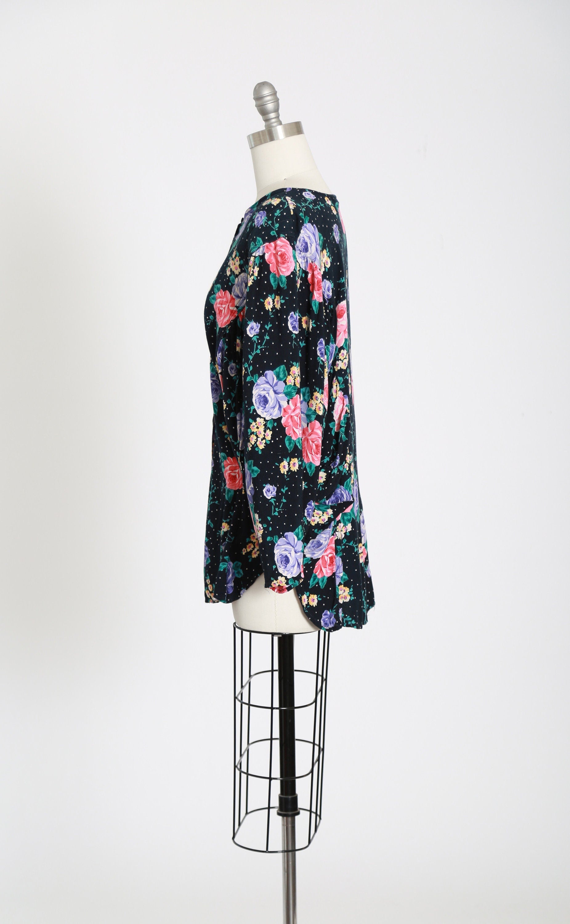 Killer Vintage 1980s floral rose print soft rayon blouse