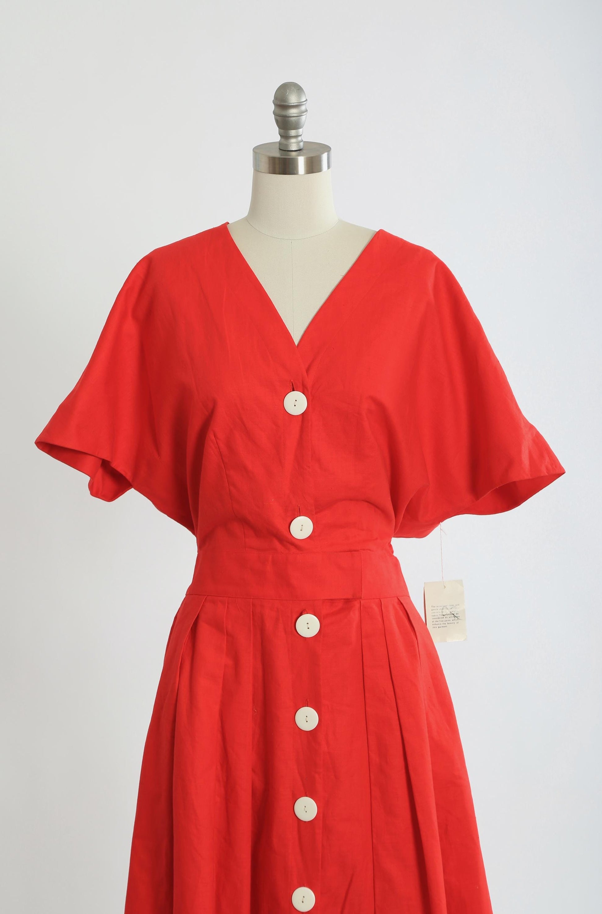 Vintage 1990s Deadstock bright red Ambria linen blend dress