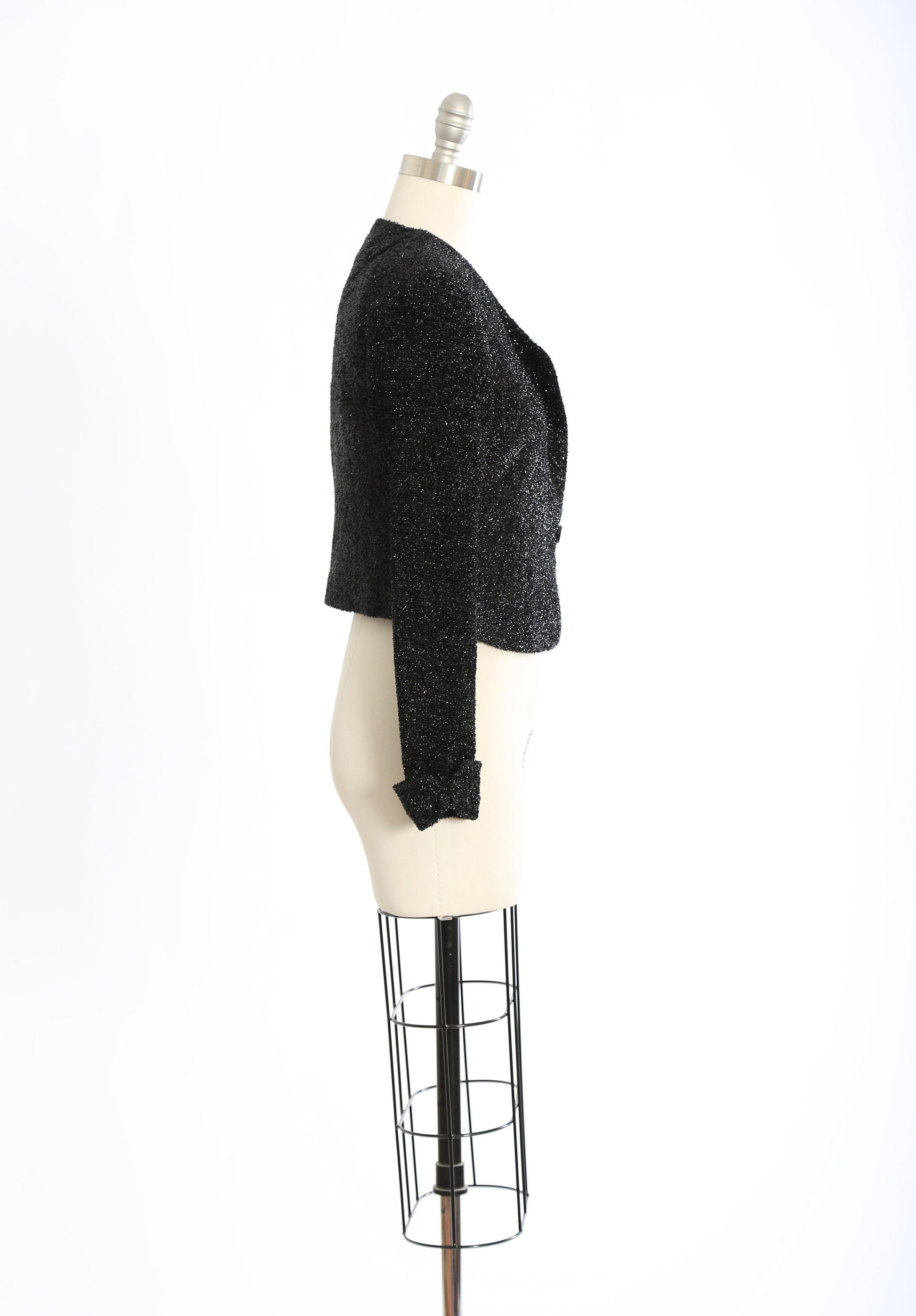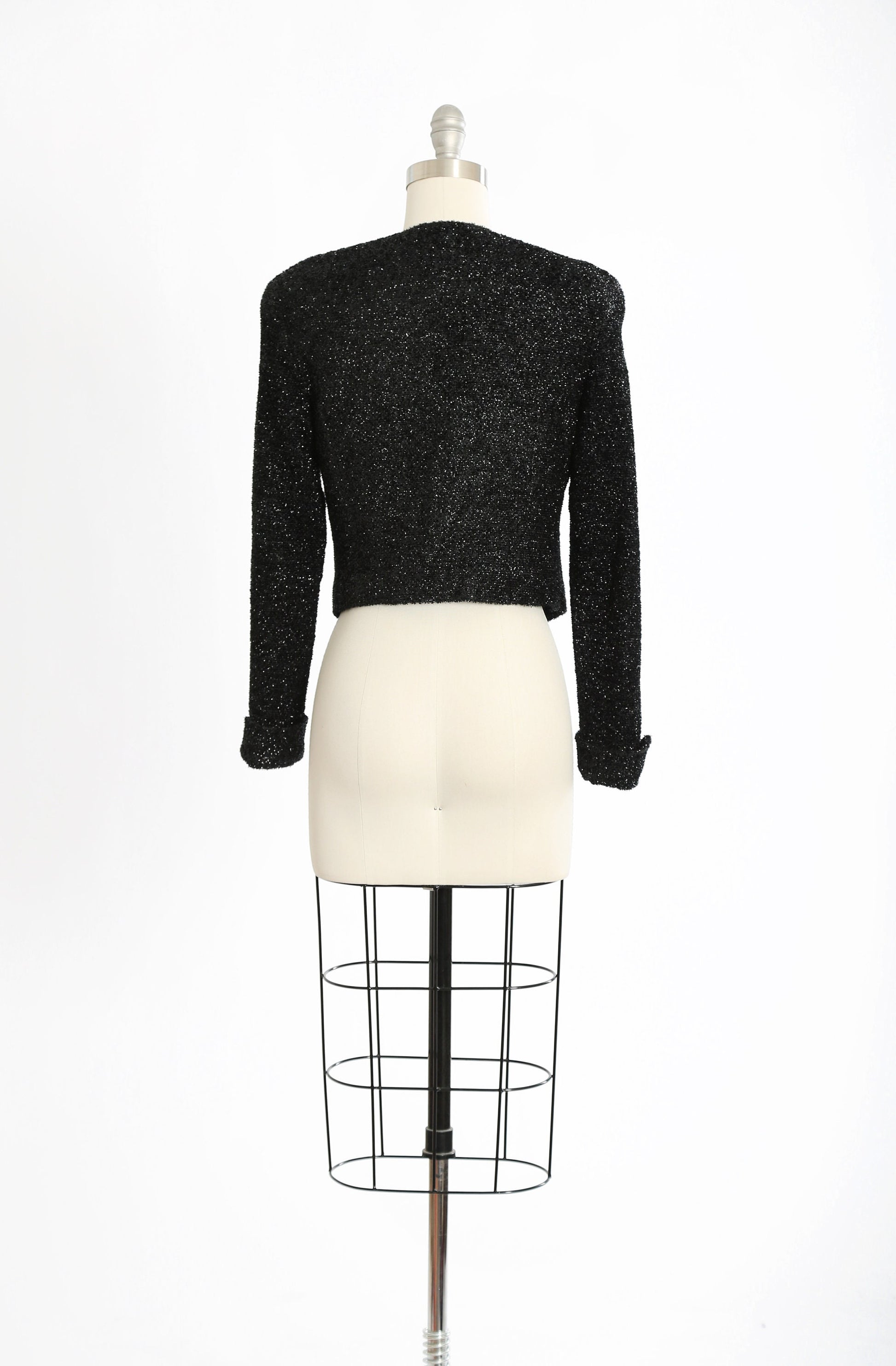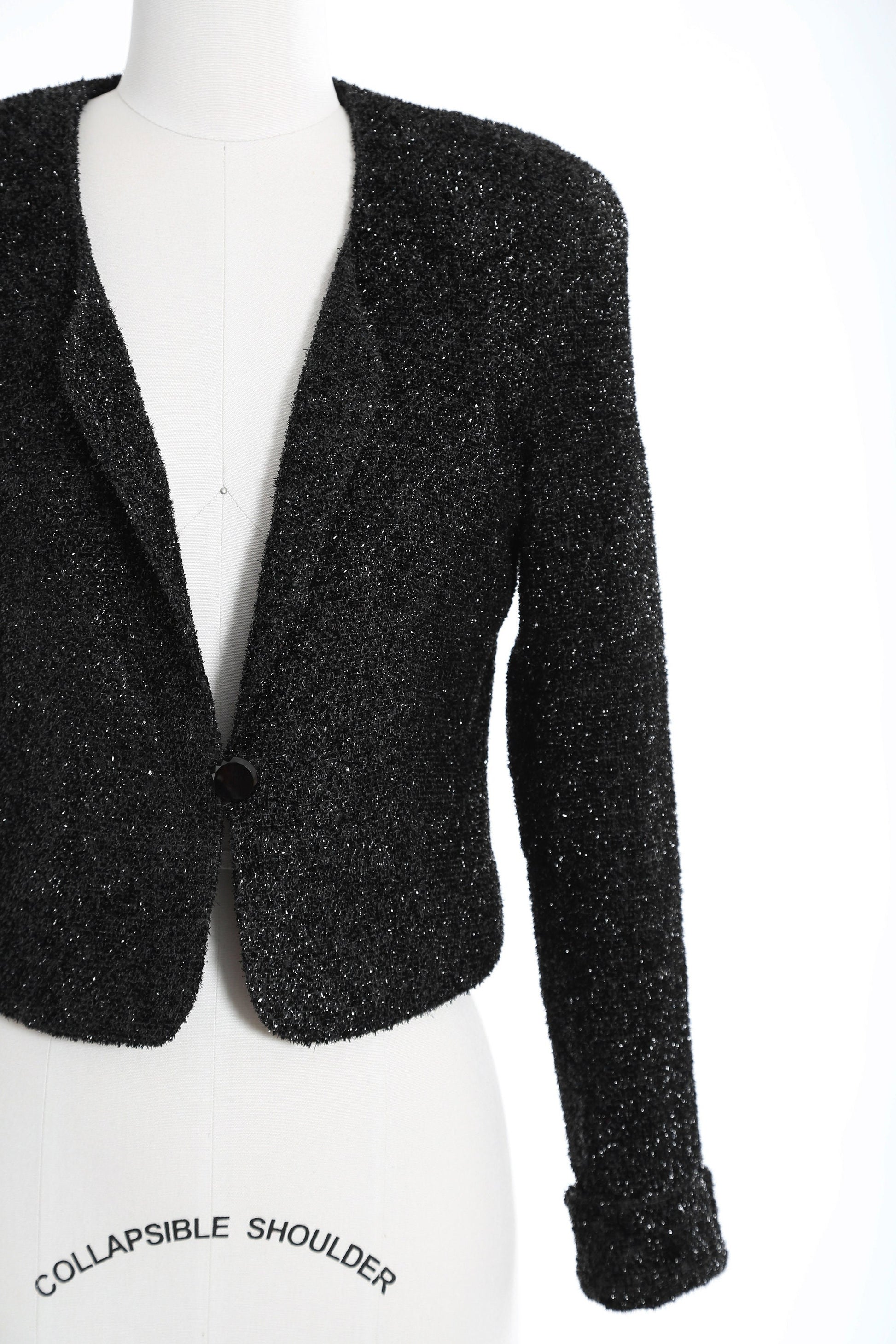 Vintage 90s Y2K black tinsel cropped jacket bolero