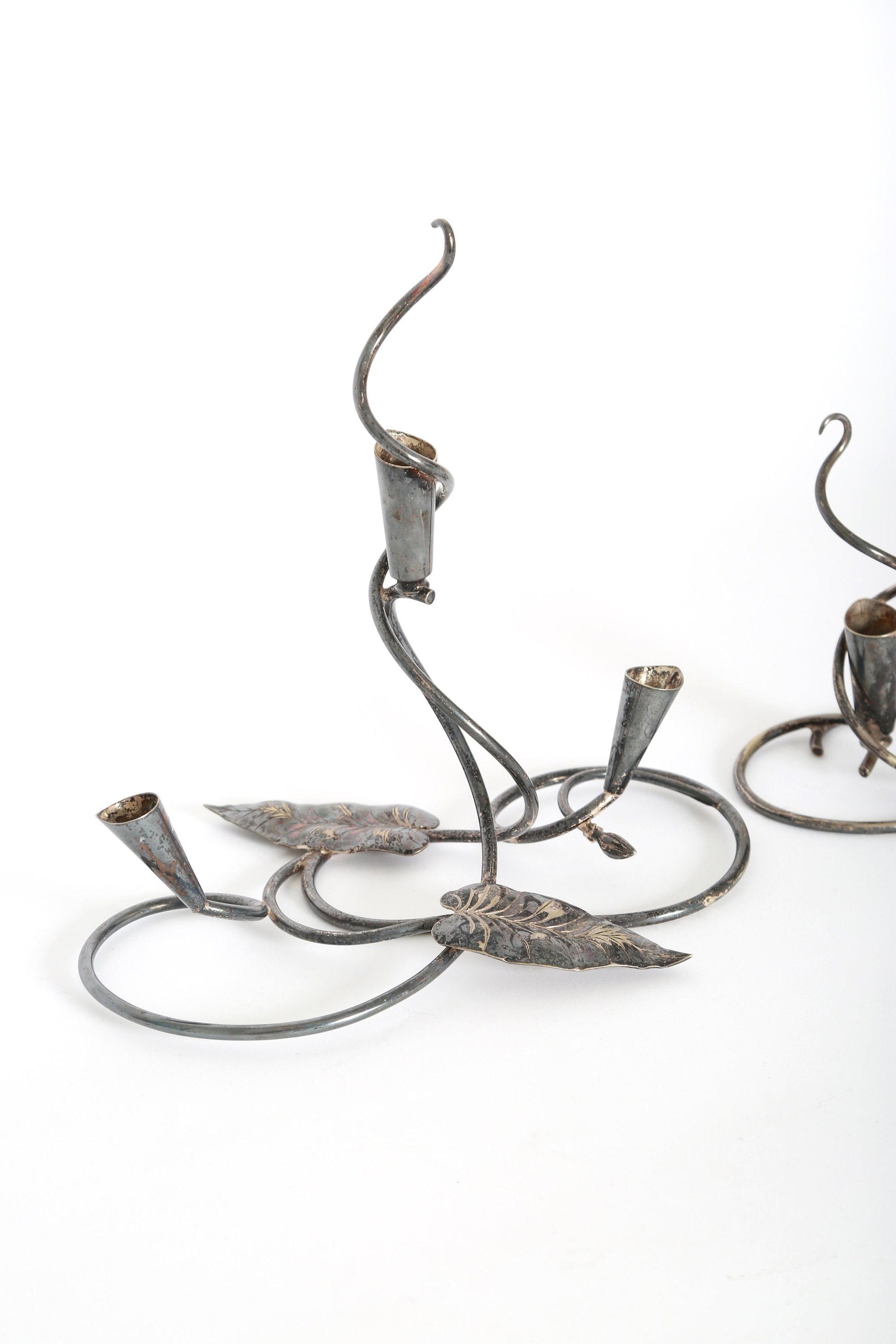 Vintage Art nouveau silverplate Lily silver plate candle stick holders