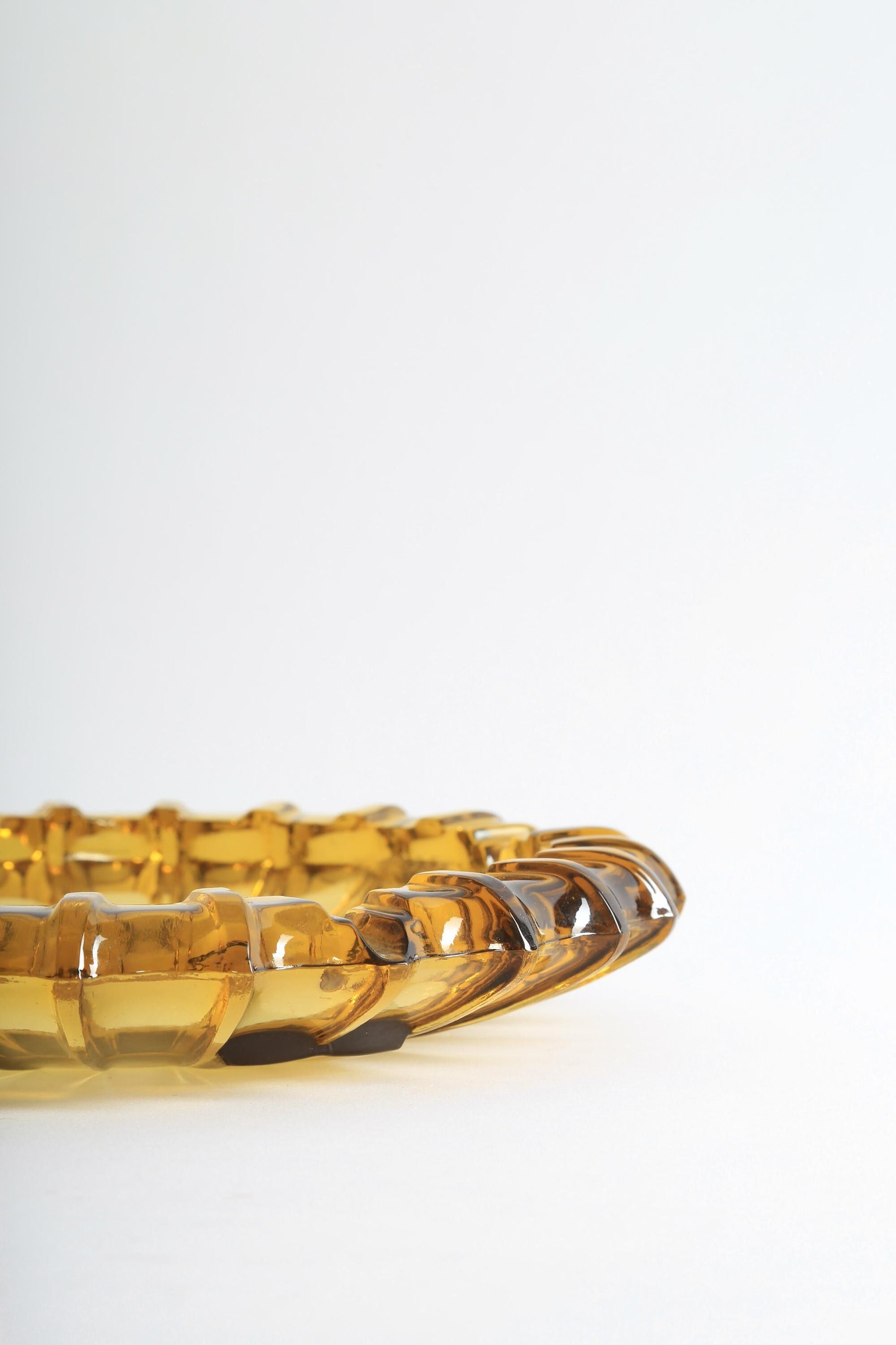 Vintage Blenko Moroccan Hazel Atlas Round Amber Glass Cigar Ashtray Catchall Dish