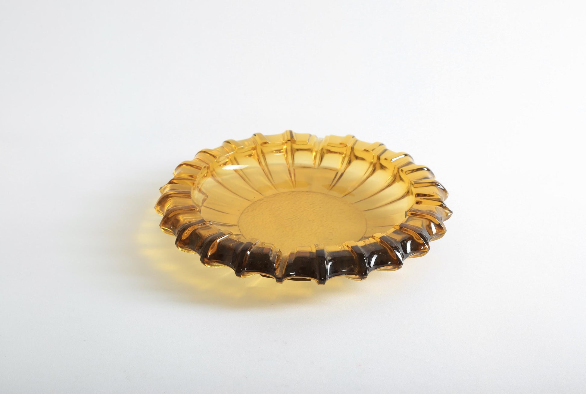 Thick heavy glass, scallop edge sunflower form