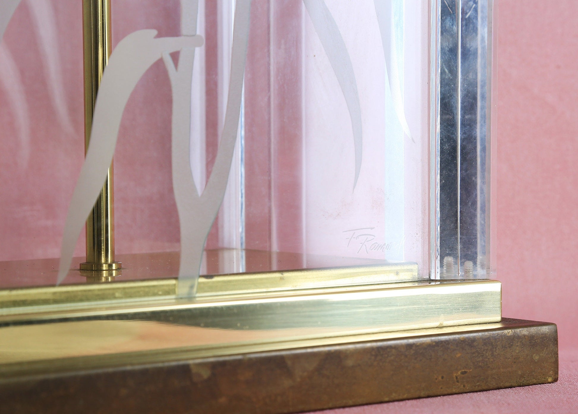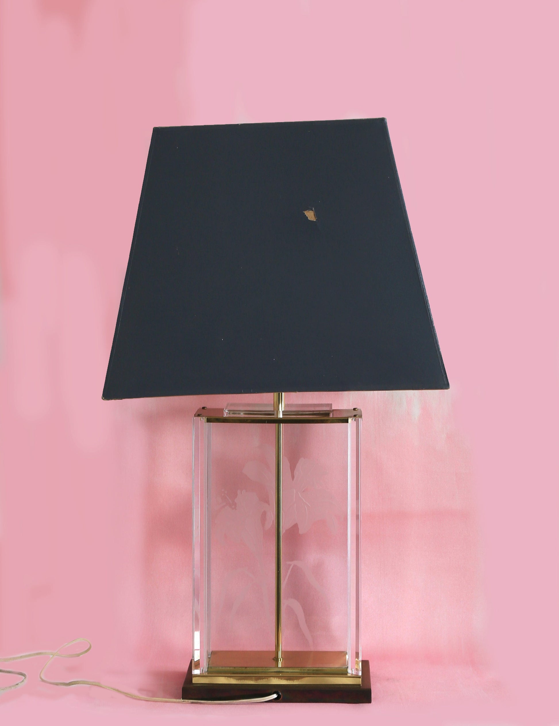 Vintage Fredrick Ramond signed Hollywood Regency acrylic floral etched glass lamp