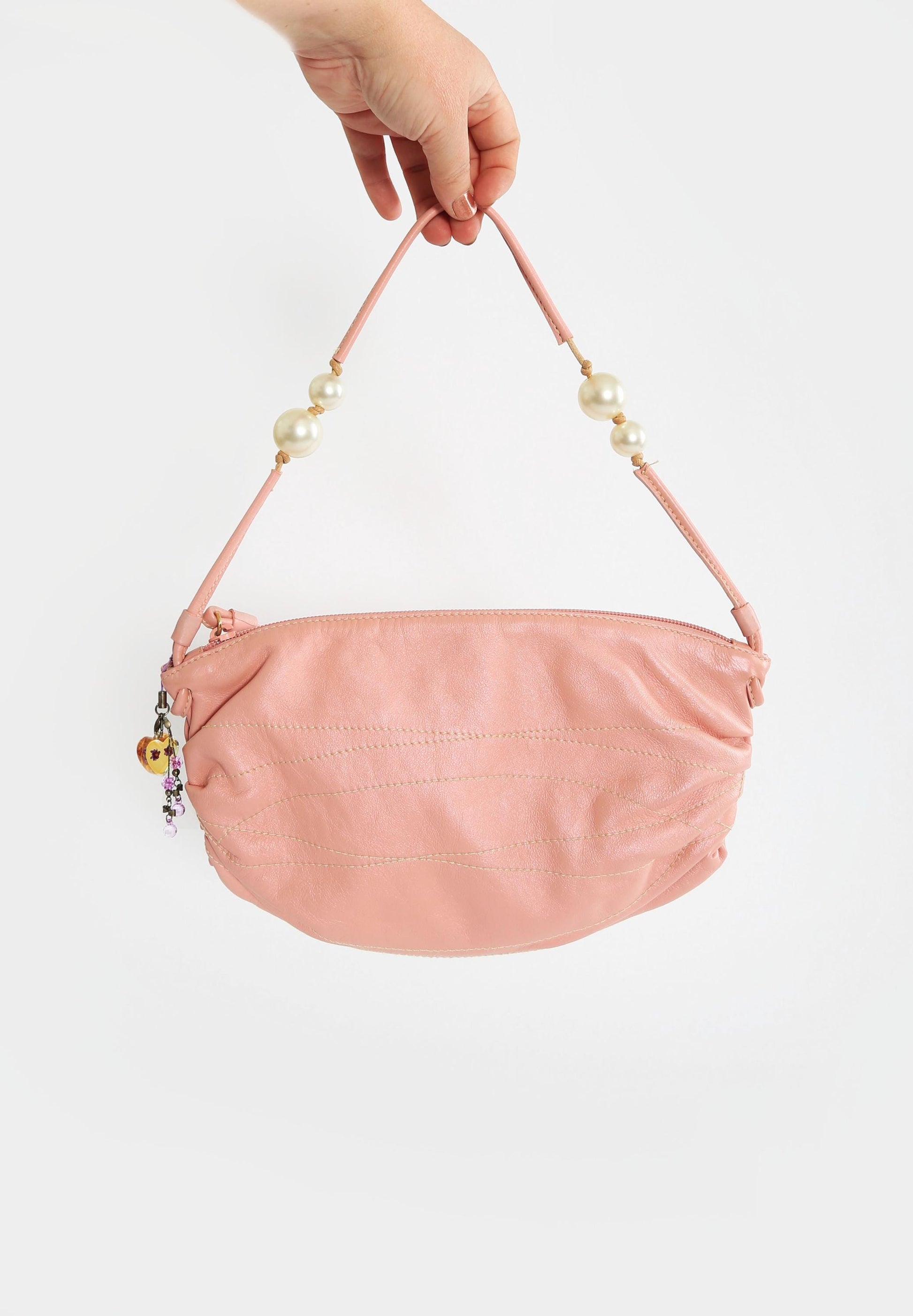 Vintage FURLA Y2K pink leather bead pearl Purse