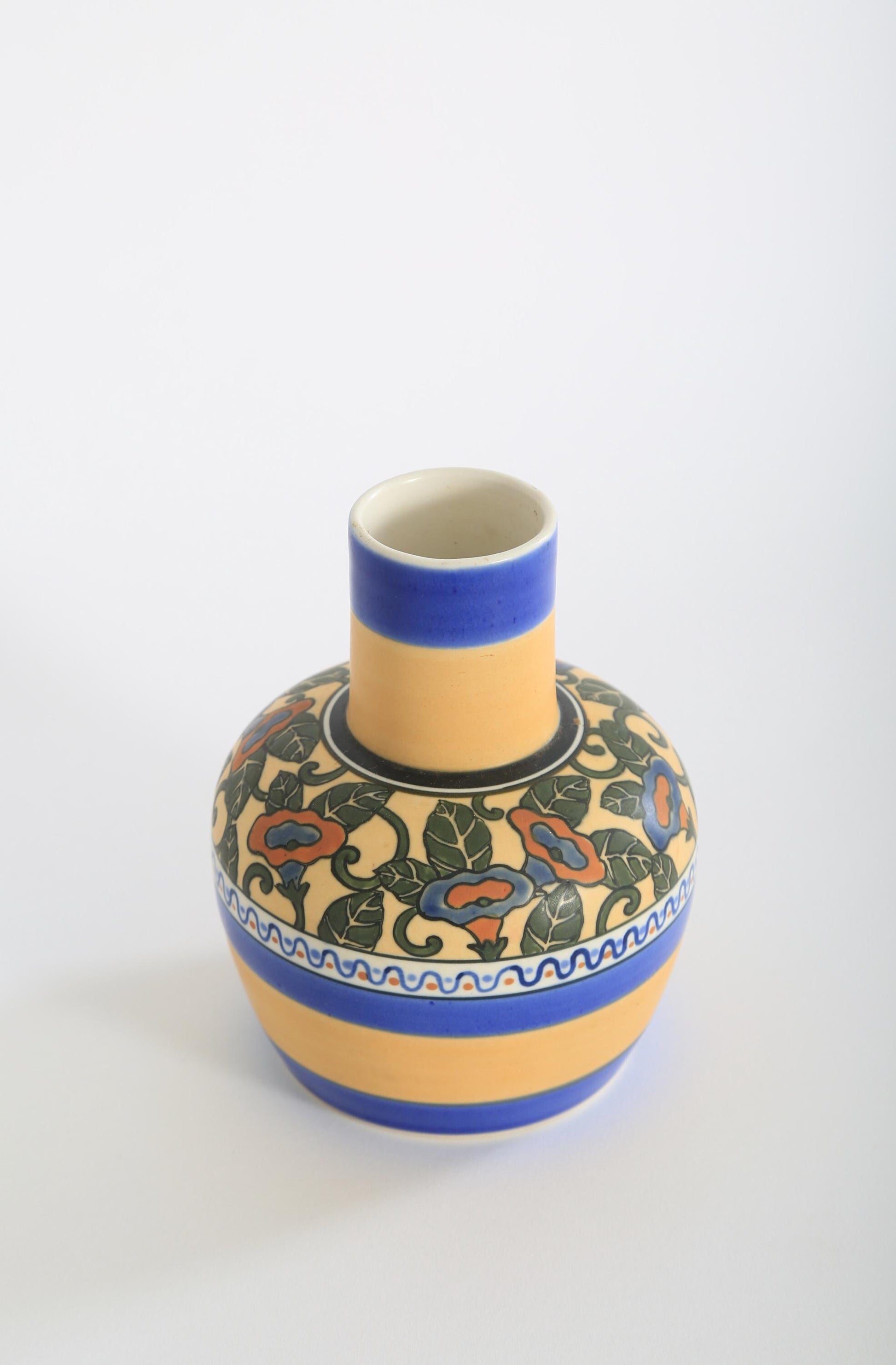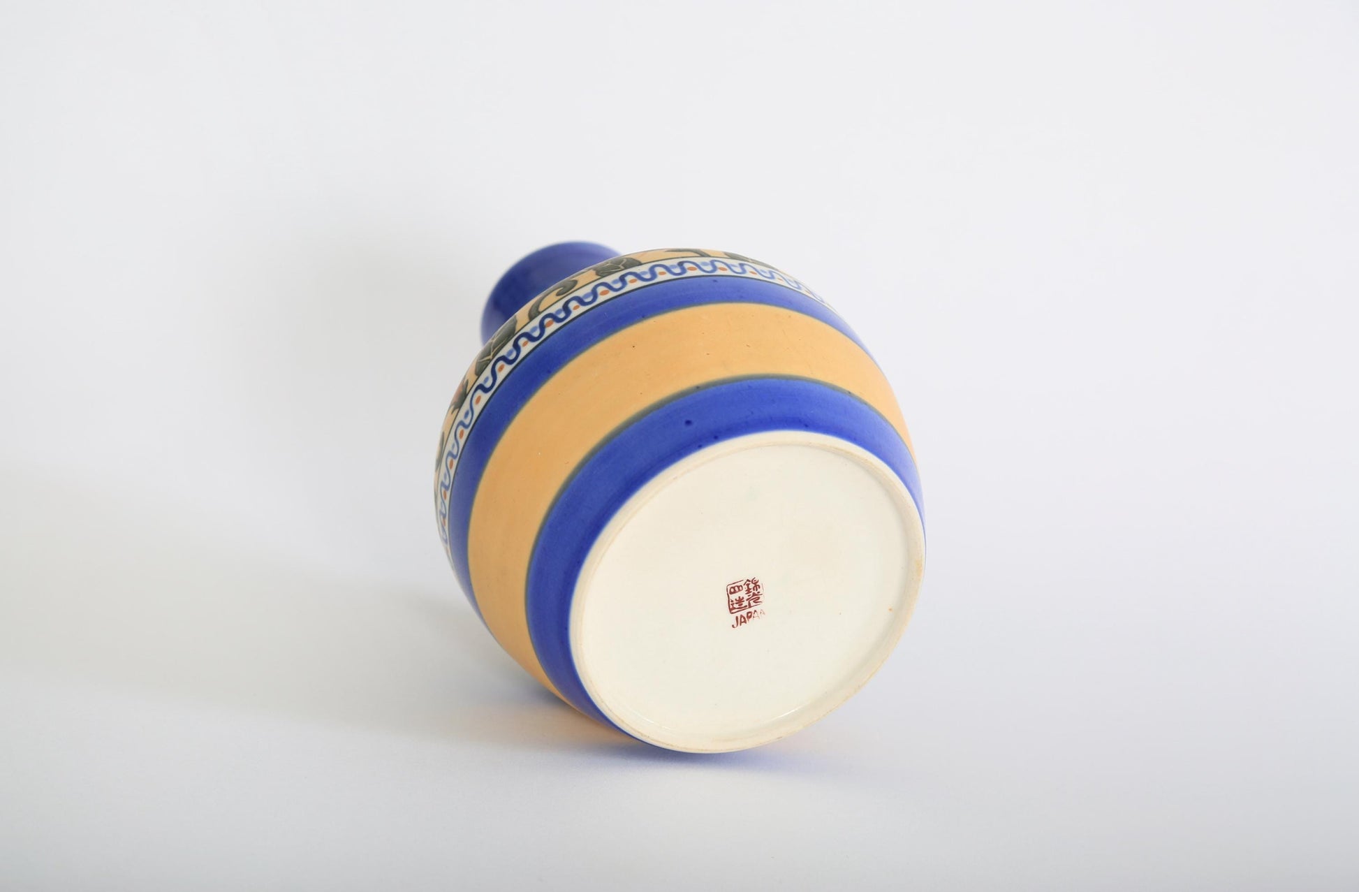 Vintage Japanese blue + yellow/beige floral ceramic vase