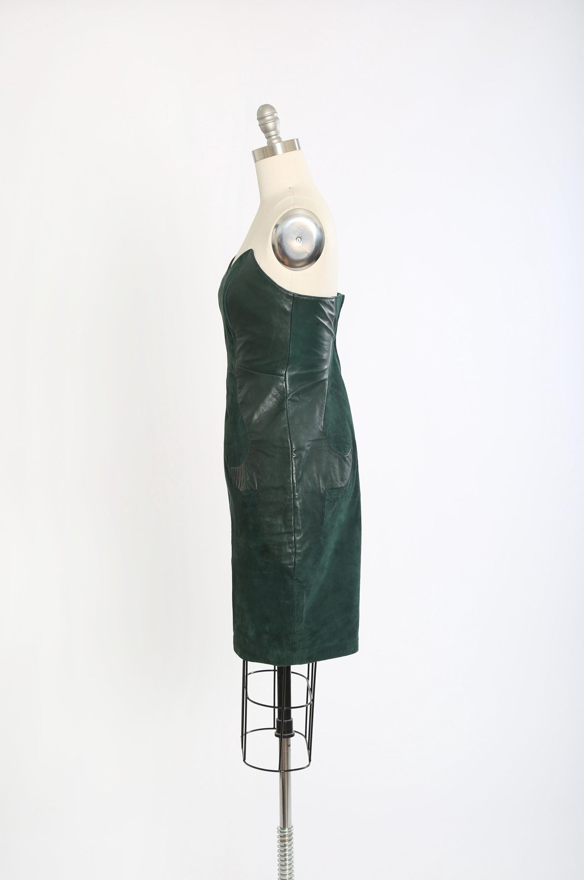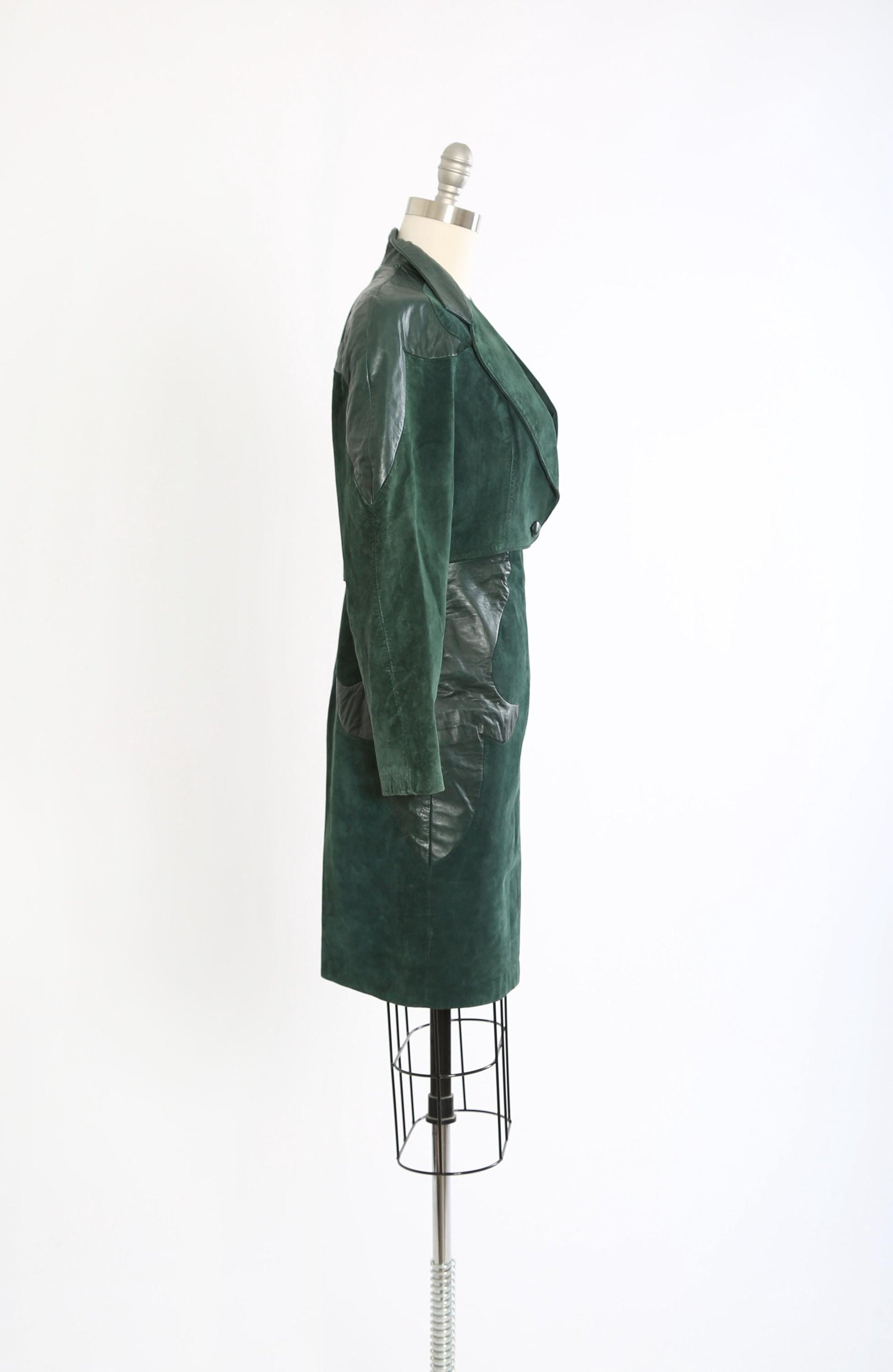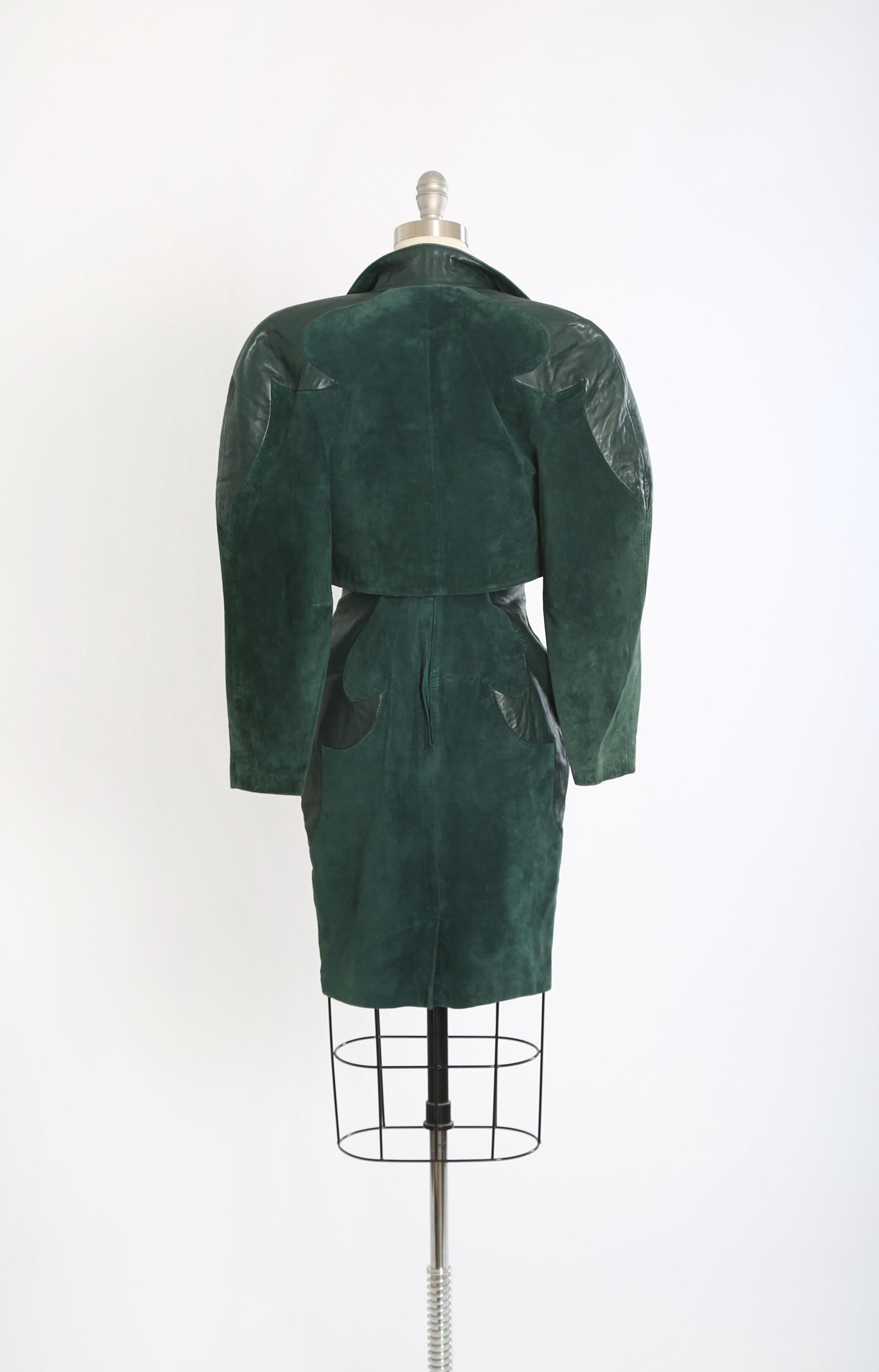 Vintage Micheal Hoban North Beach green leather mini dress + cropped jacket