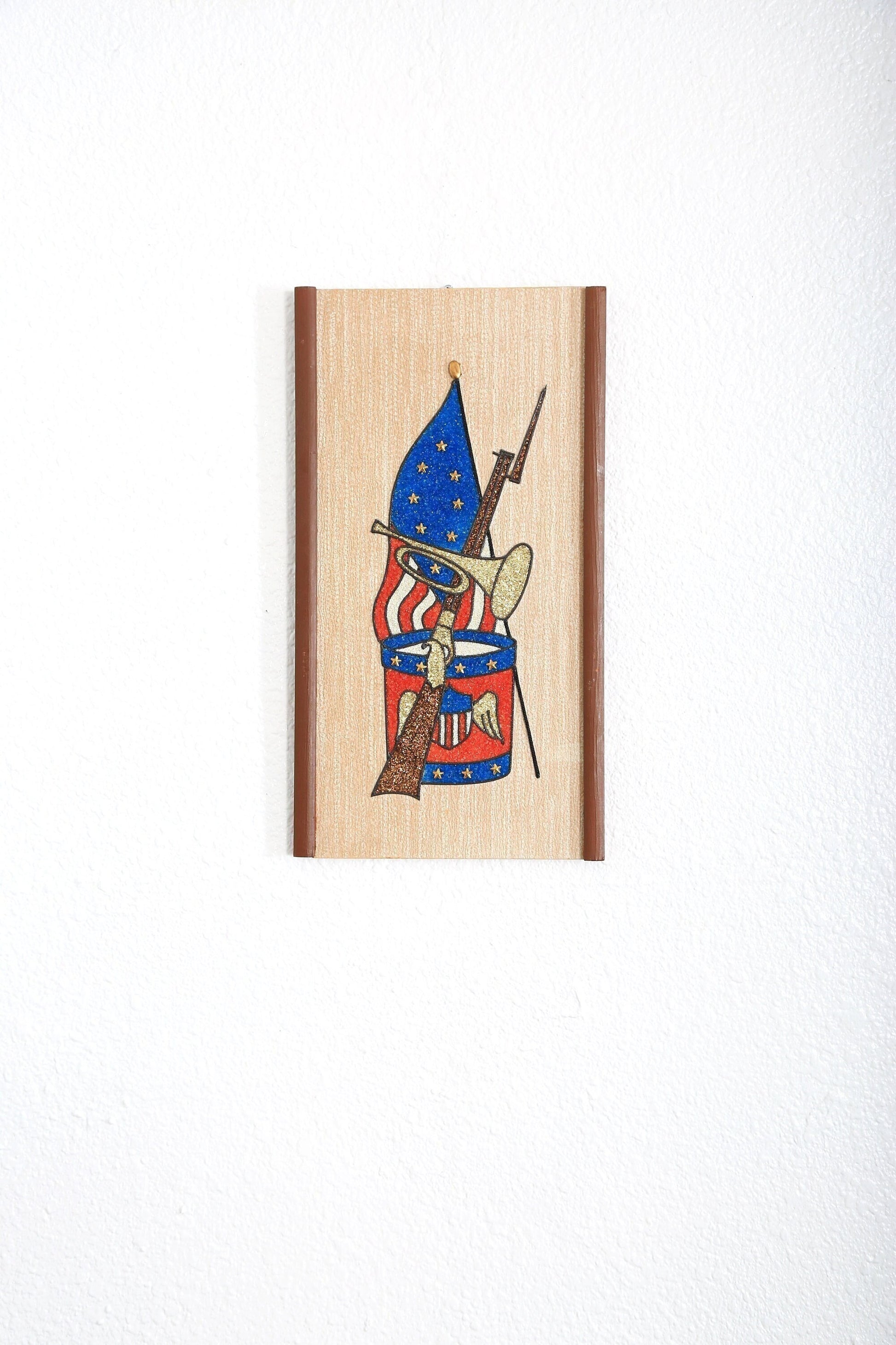 Vintage Mid Century Modern Patriot framed gravel rock Mosaic art