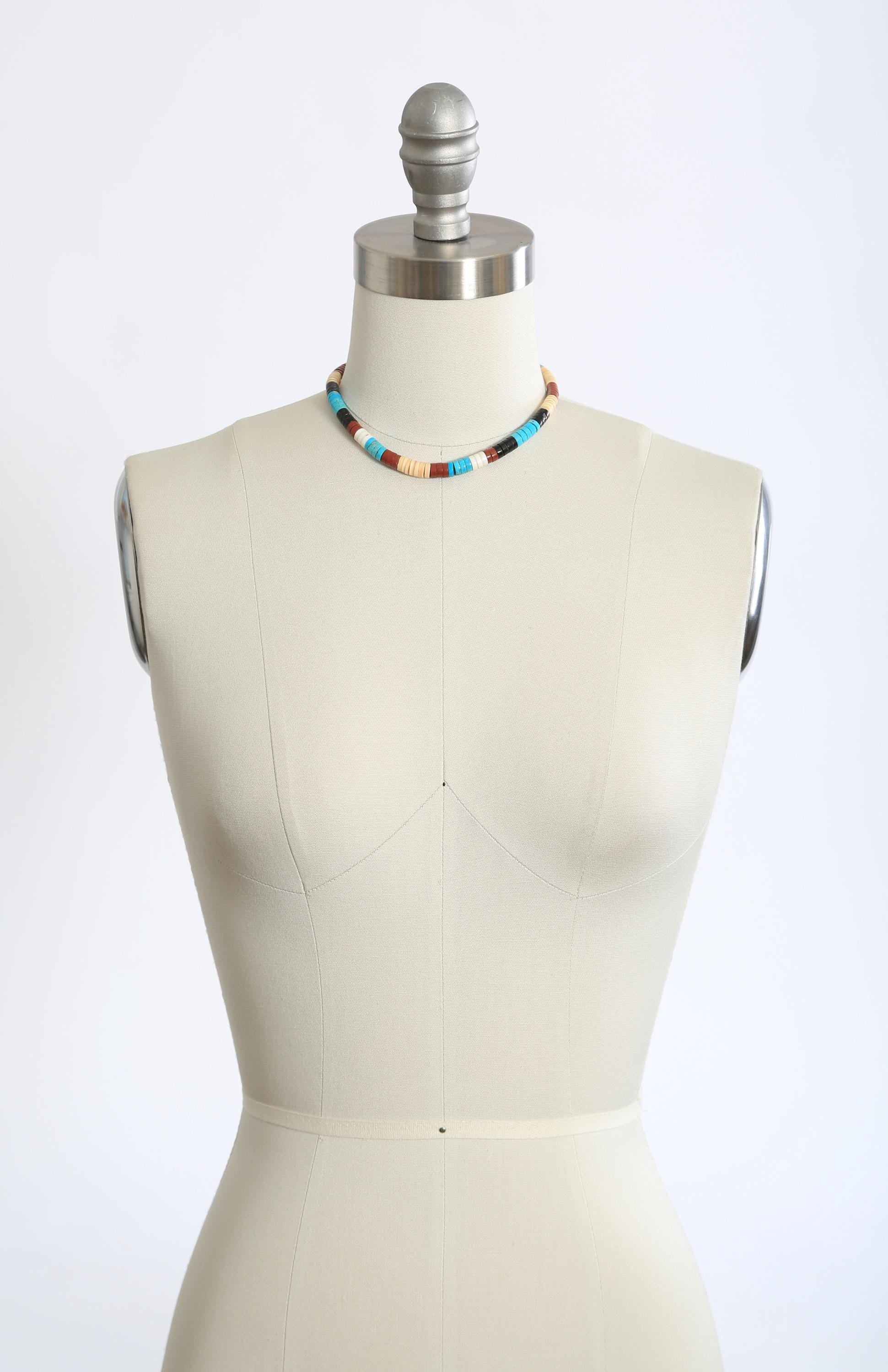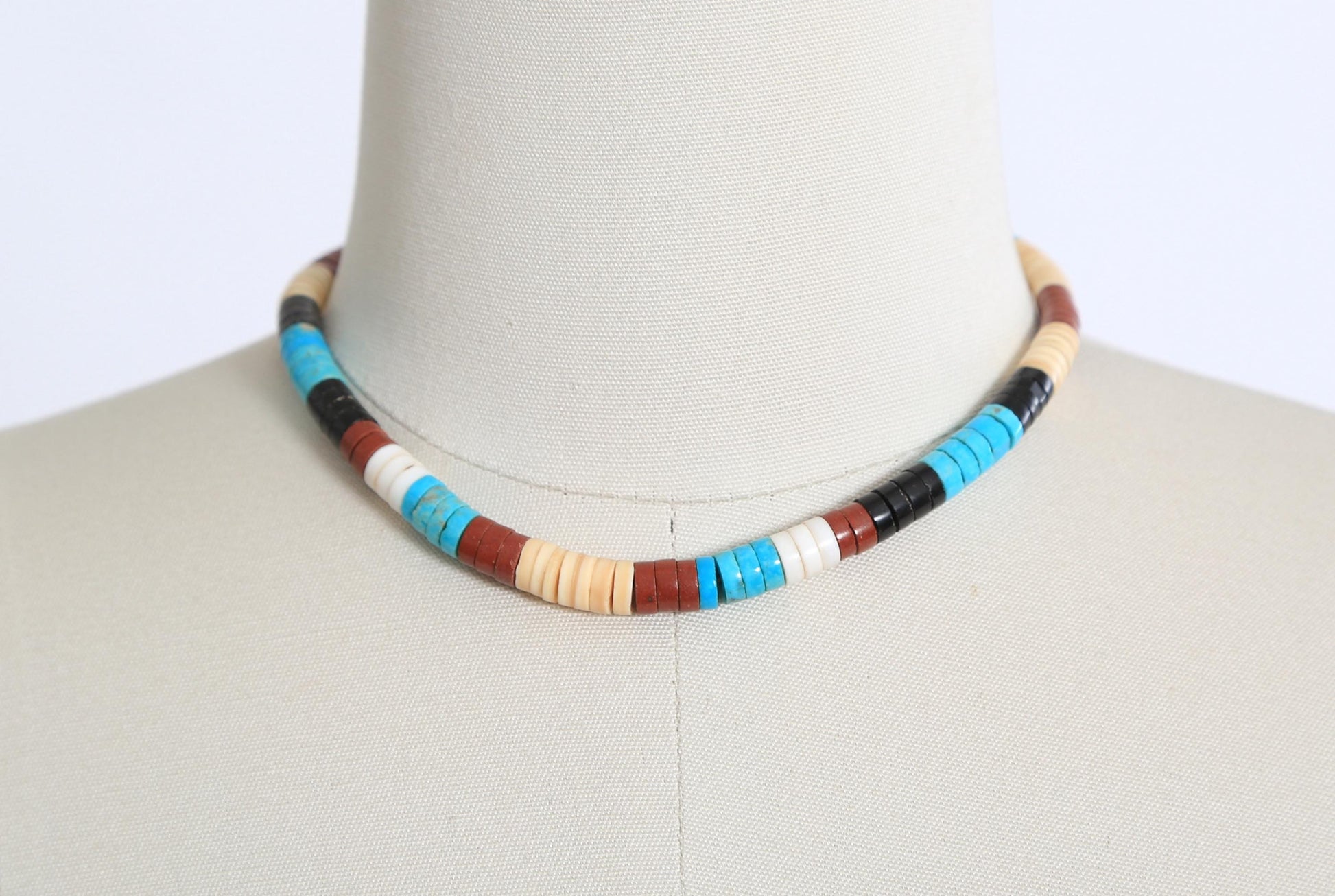 Beautiful vintage Native American Turquoise shell Heishi beaded necklace chocker