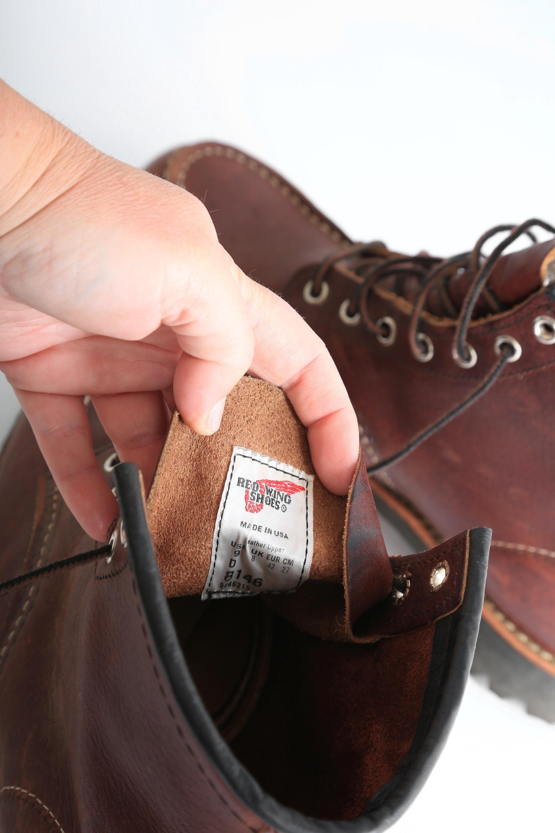 Vintage Red Wings 8146 Roughneck 6-Inch brown Leather Heritage Boots Made in USA Men's work boots Sz. 9