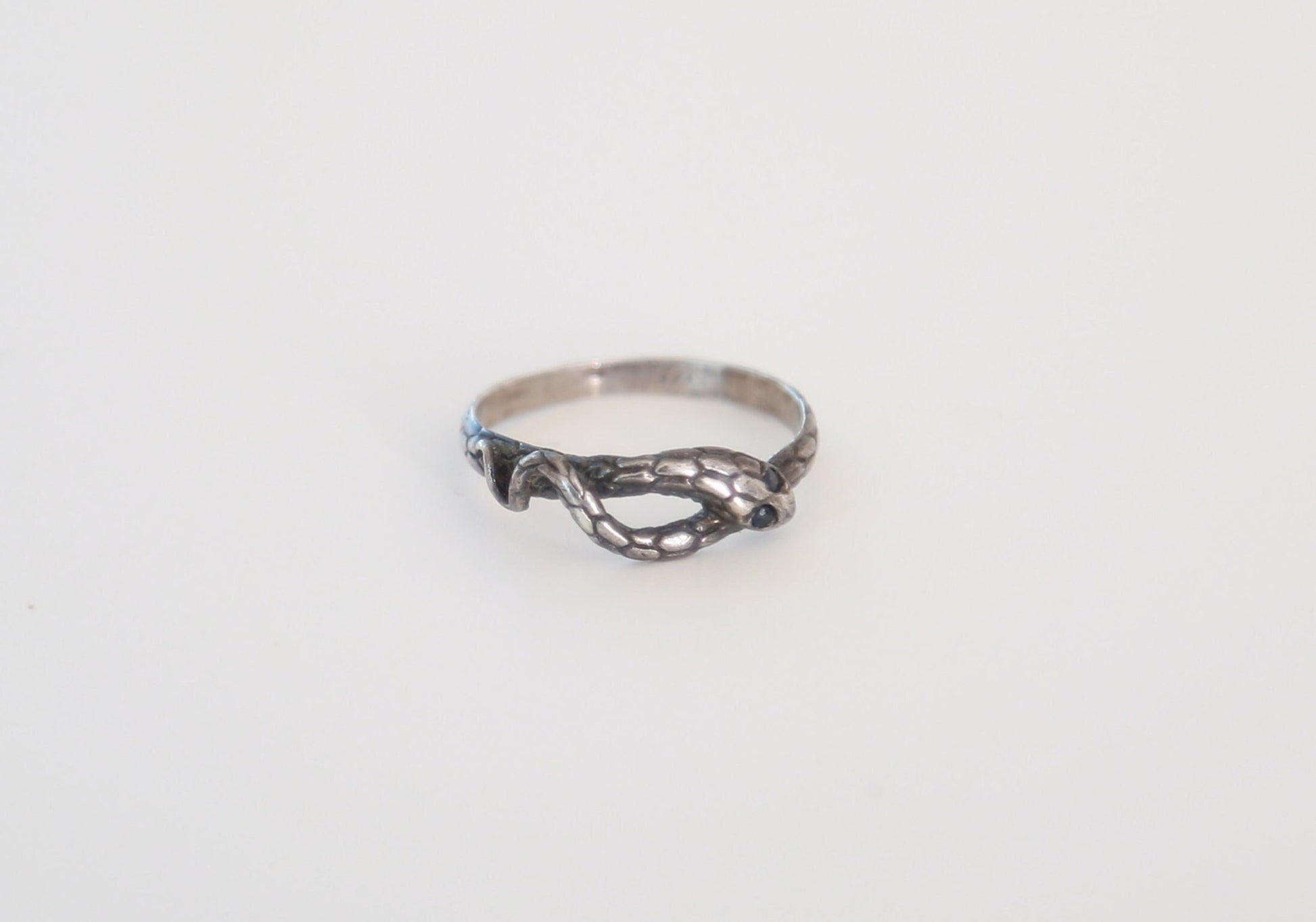 Killer vintage sterling silver snake ring with deep blue sapphire eyes