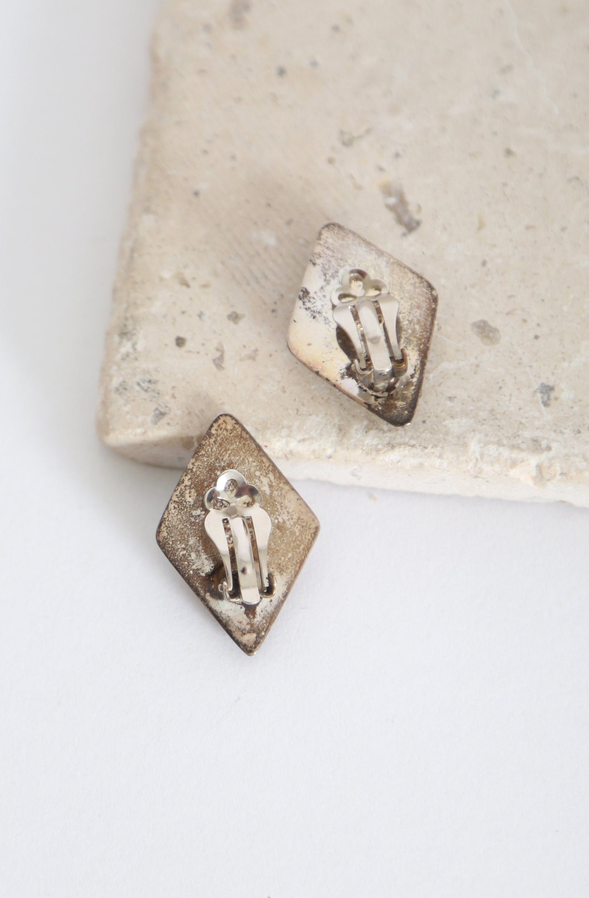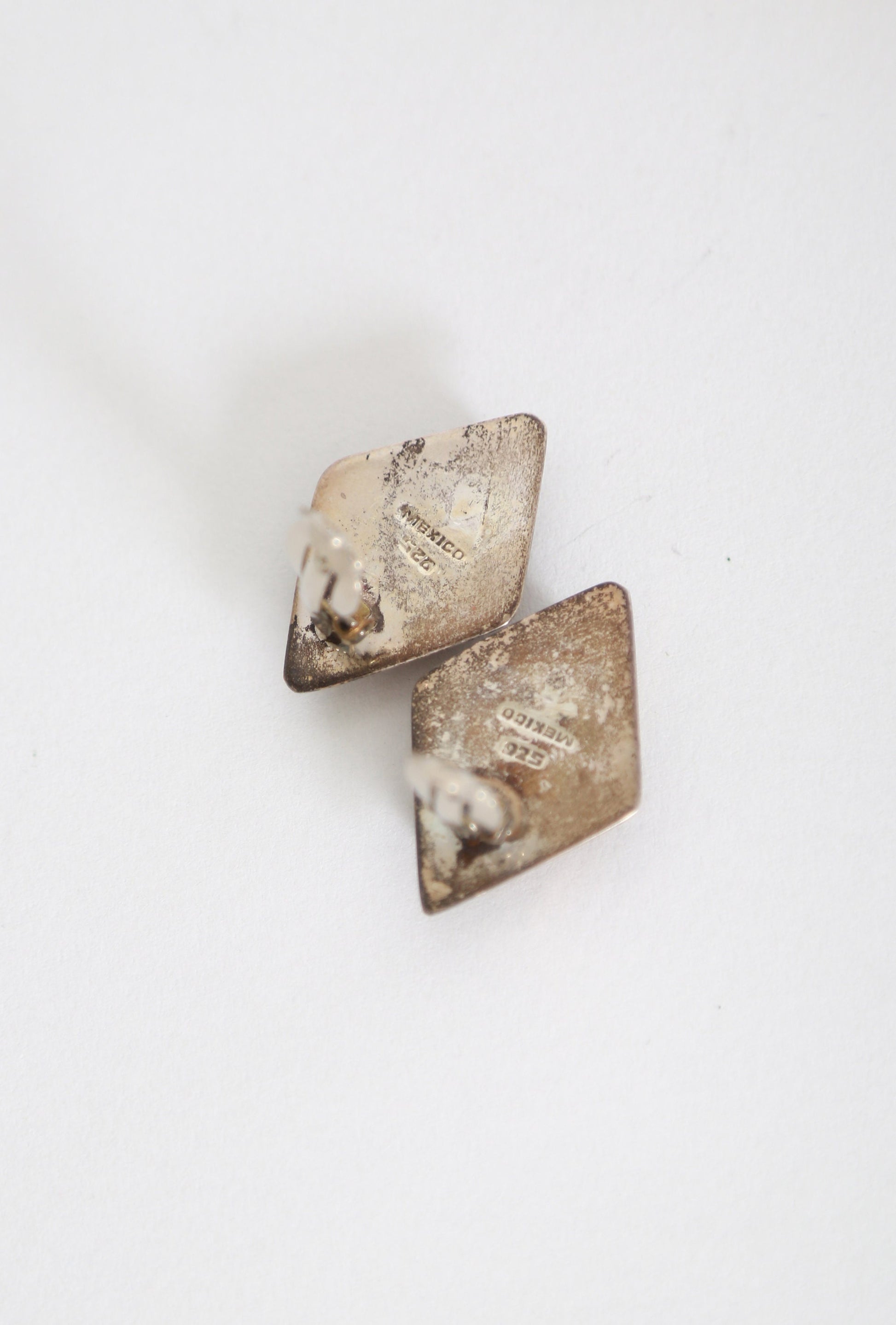 Vintage Sterling Silver Turquoise Onyx Mexican diamond clip on earrings