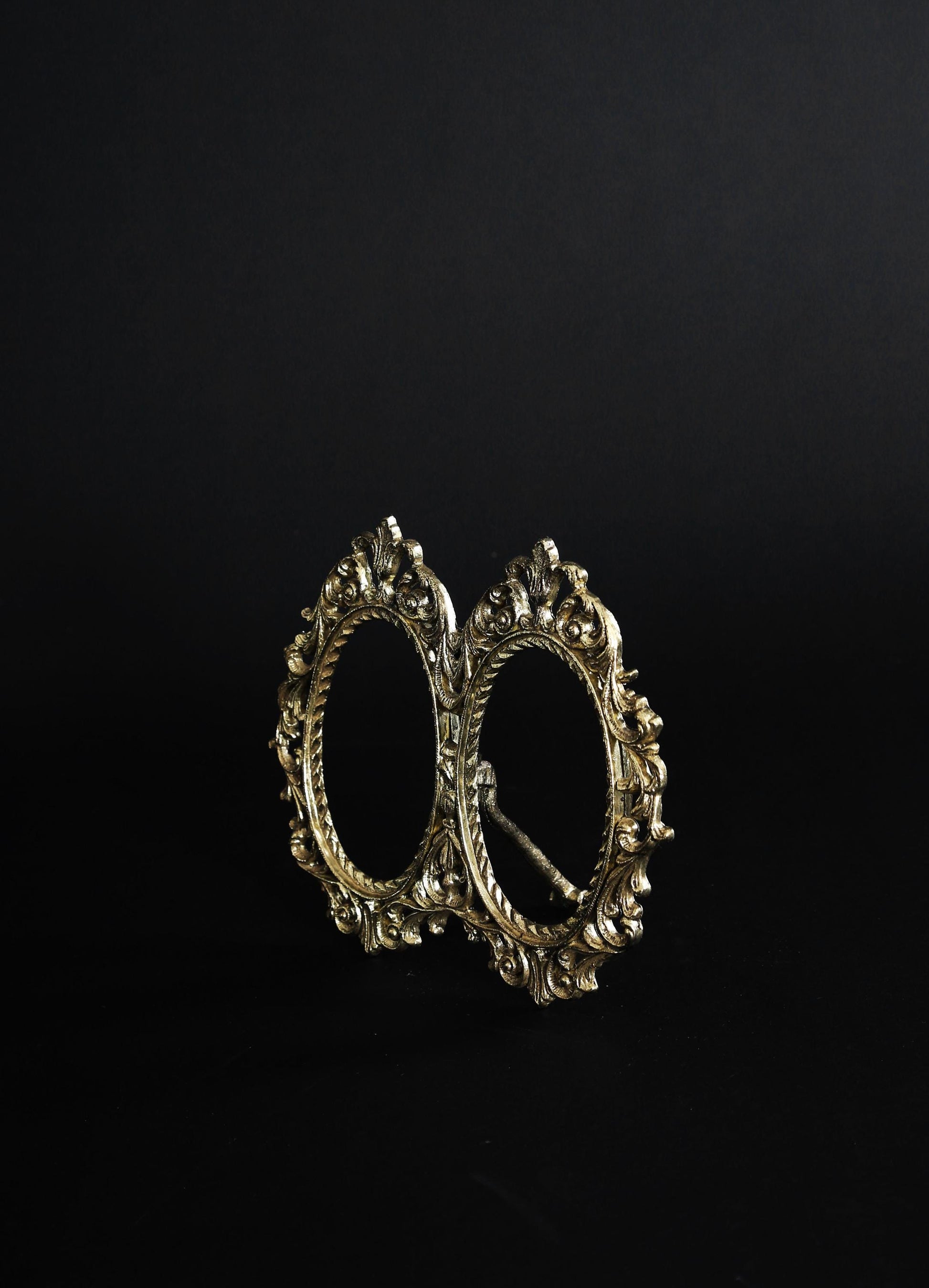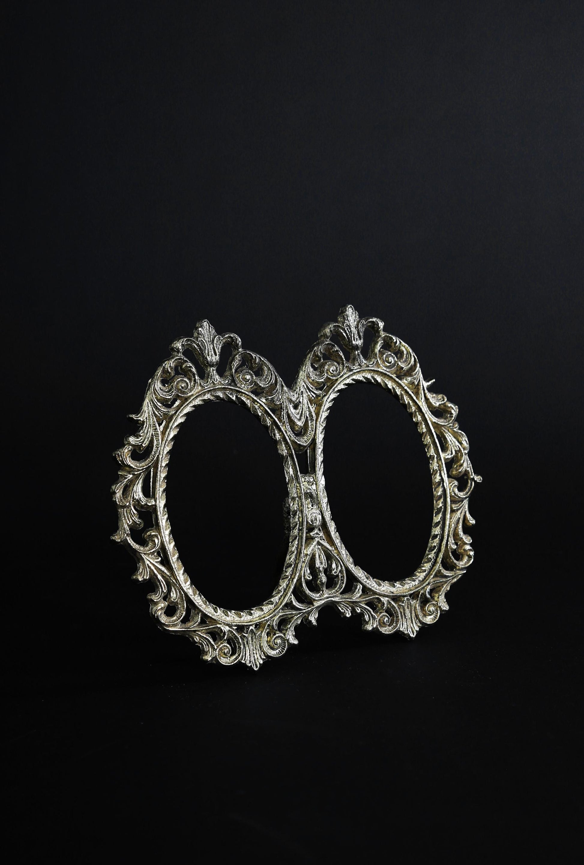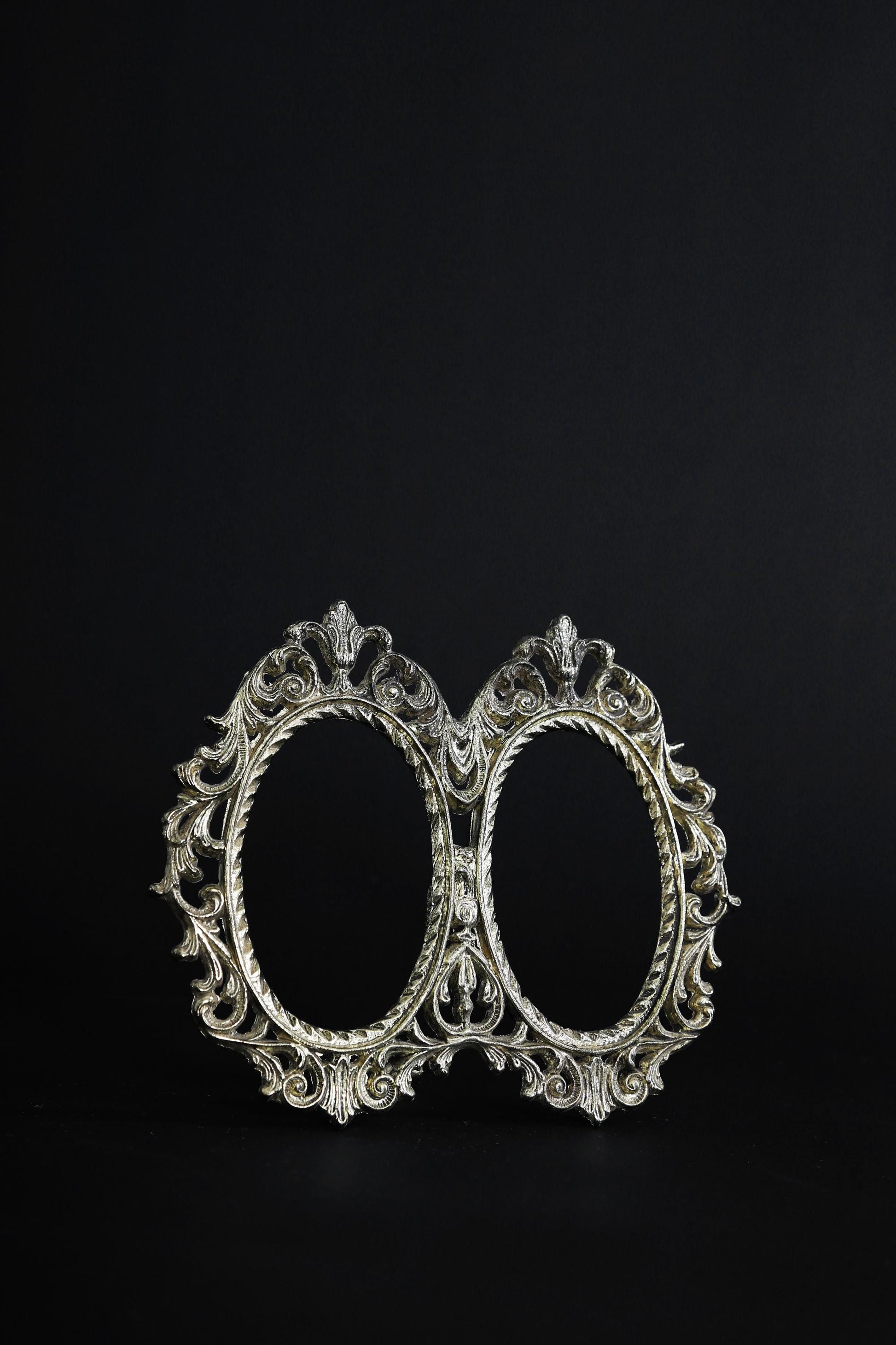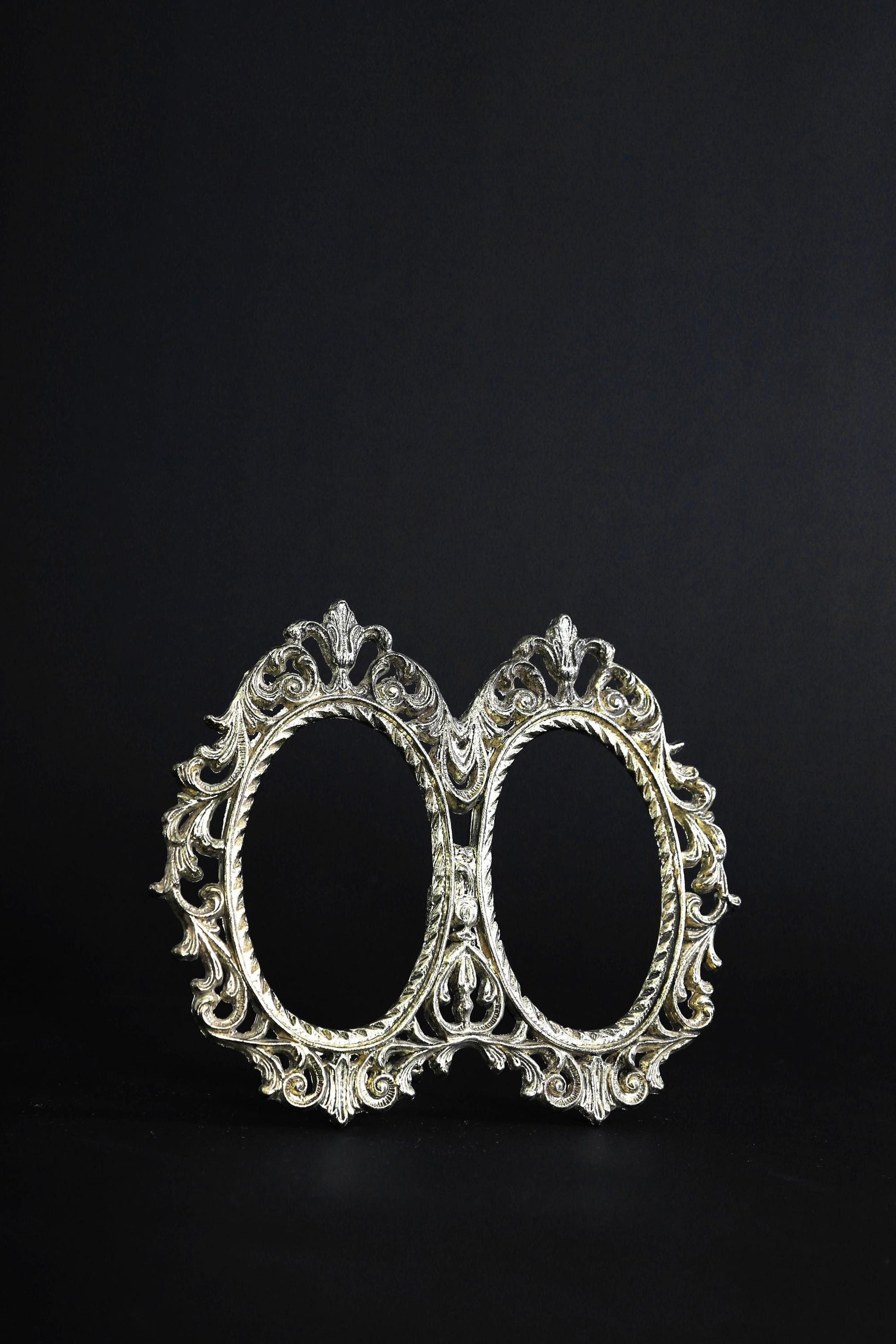 Vintage Victorian Style Ornate Oval Double Brass Picture Frame easel