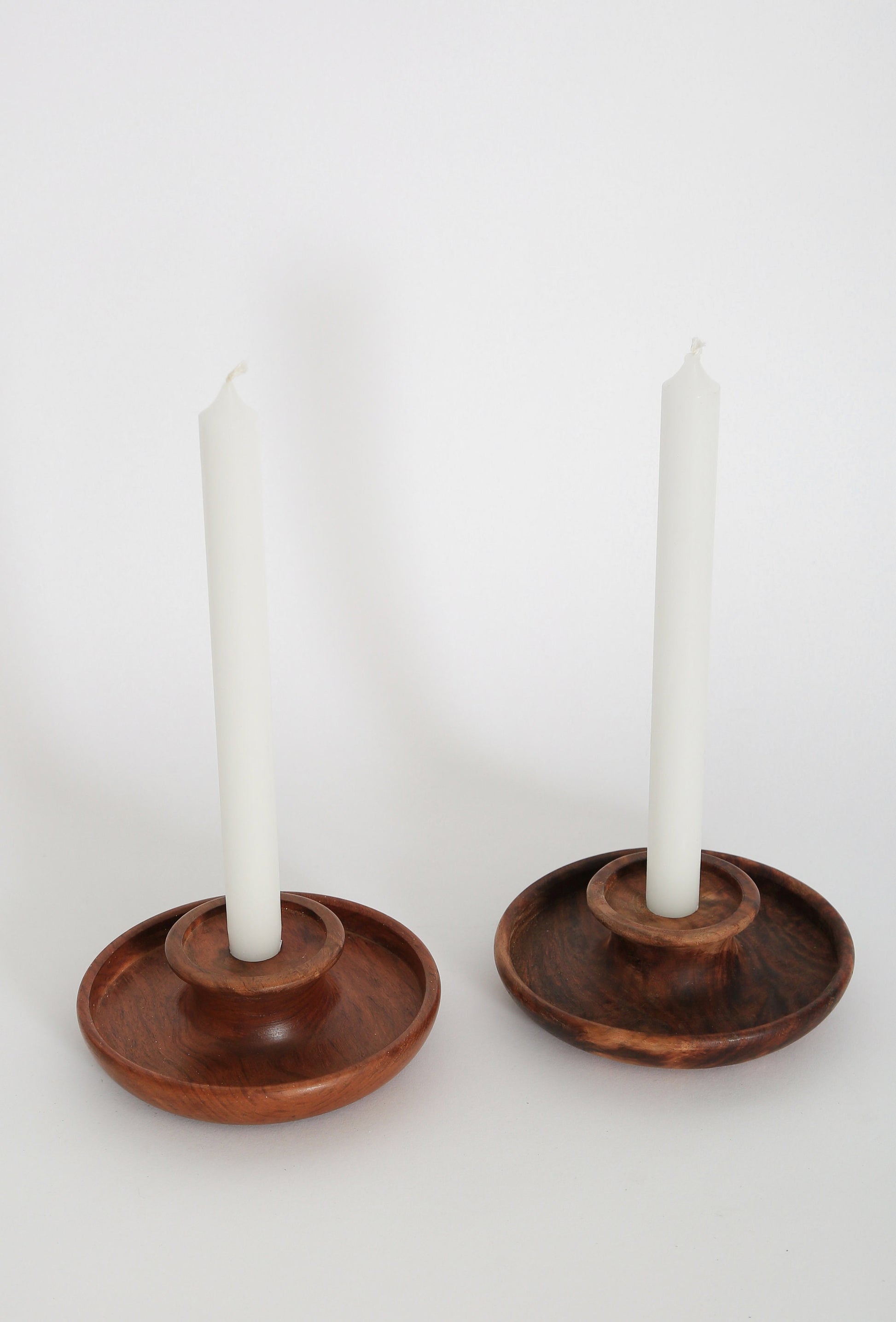 Vintage turned wood walnut candle stick holders pair